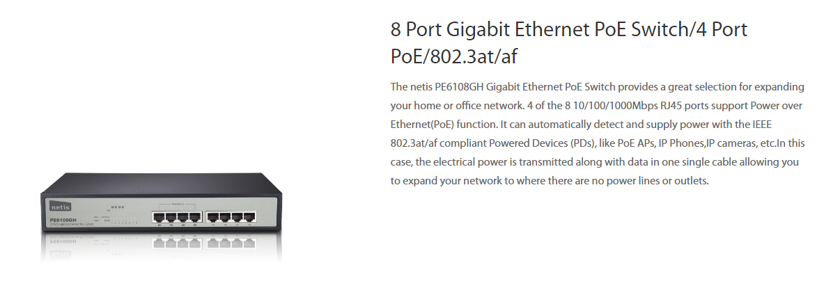 Netis PE6108GH 8 Port Gigabit Ethernet PoE Switch