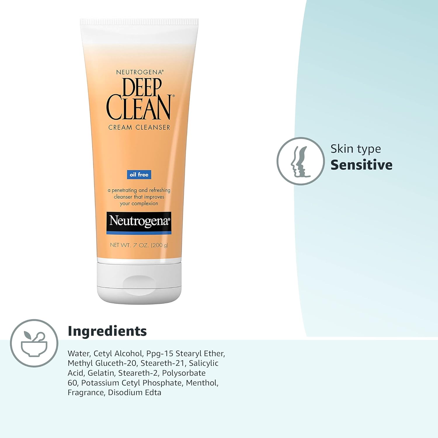 - NEUTROGENA DEEP CLEAN Cream Cleanser 200ml with Beta Hydroxy Acid to Remove Dirt, Oil & Makeup, Alcohol-Free, Oil-Free & Non-Comedogenic | International