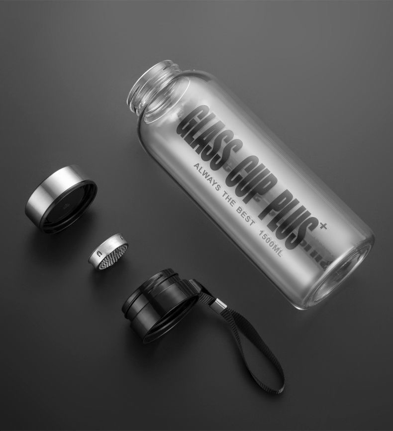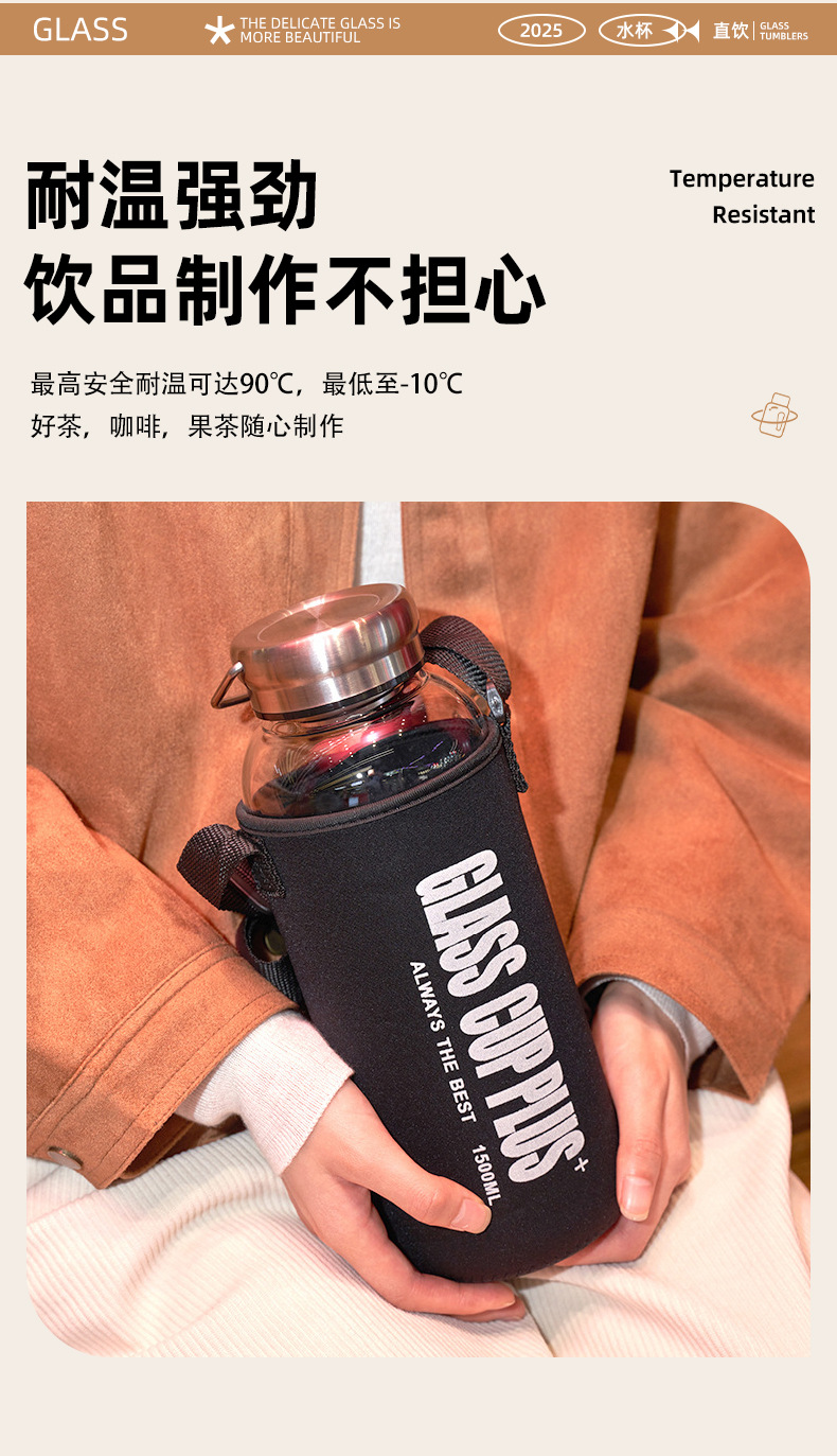 New 1000ml glass Water Bottle with Time Marker Creative Large Capacity Leakproof Drink Bottle(1000ml new shape)
