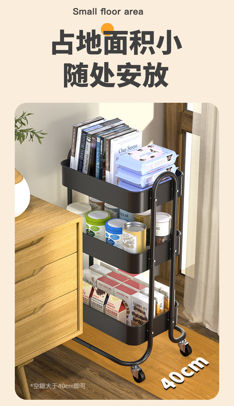 Kitchen storage trolley features: