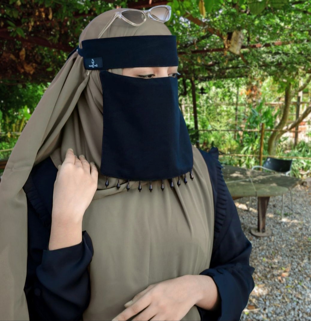 Headband or Elastic Support: The niqab includes an adjustable, discreet elastic band or a matching embroidered headband for secure placement.