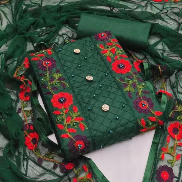 Product details of Unstichied screen print cotton three piece salower kameez for women - 3 rear of cotton