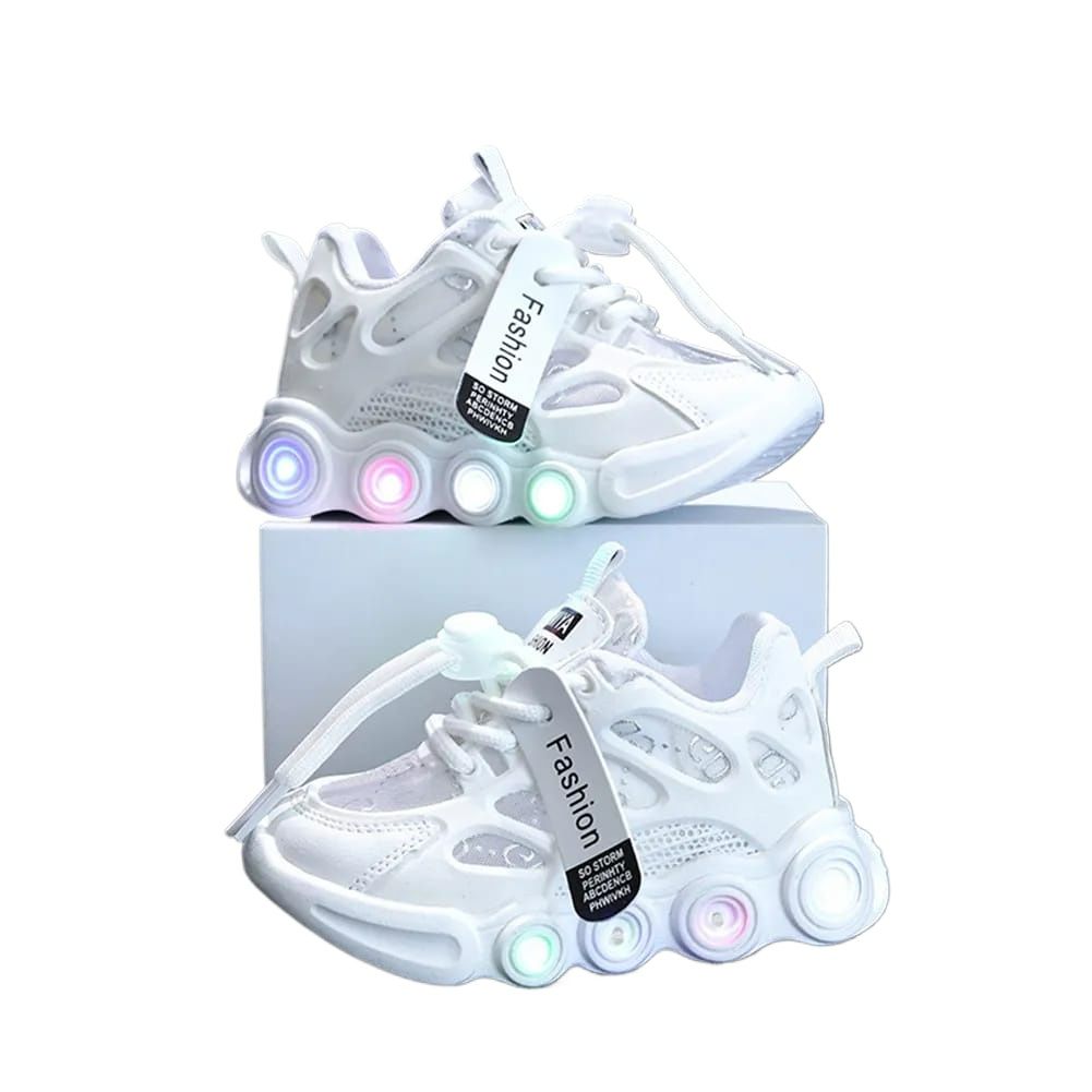 Product details of GC Kids Mesh Sneakers With Led Light Non-slip Sole Letter Ribbon Casual Trendy Breathable Shoes