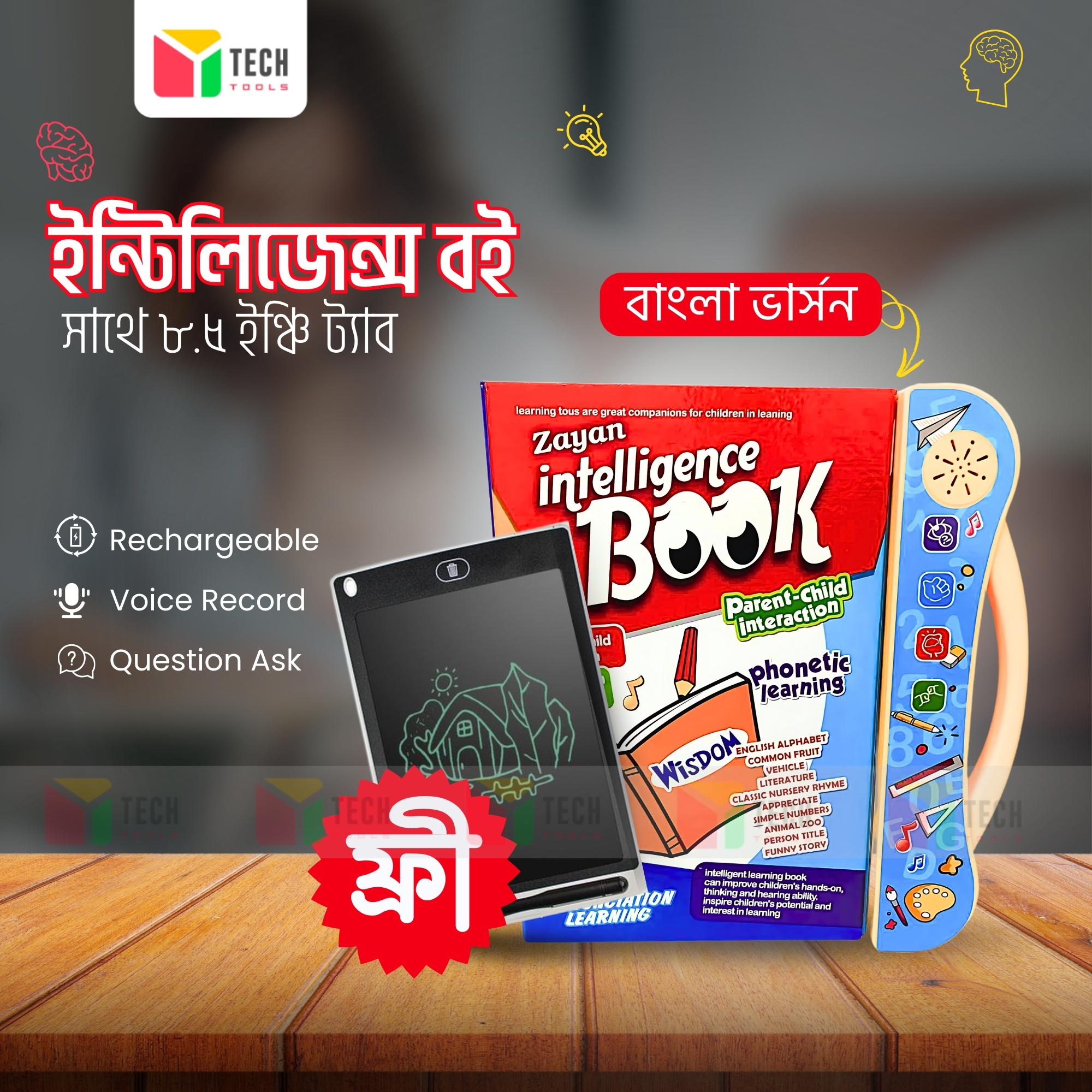 - Upgrade your child's learning experience with the Zayan Intelligence Book (Bangla Version)! 🎓📖 This rechargeable interactive book makes learning fun and engaging with its voice recording and question-asking features. Perfect for early education, it helps kids improve their phonetic learning, vocabulary, and listening skills.