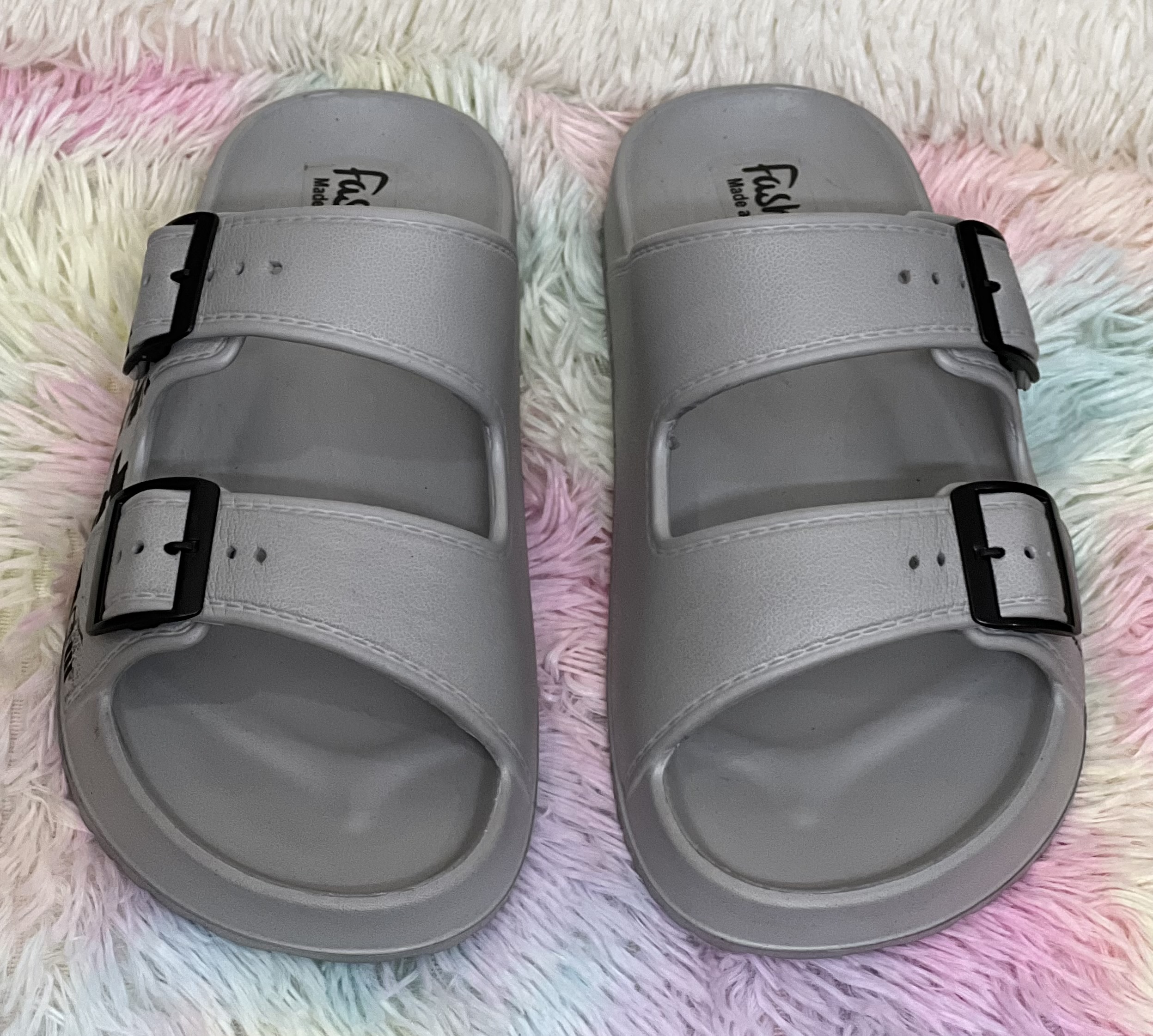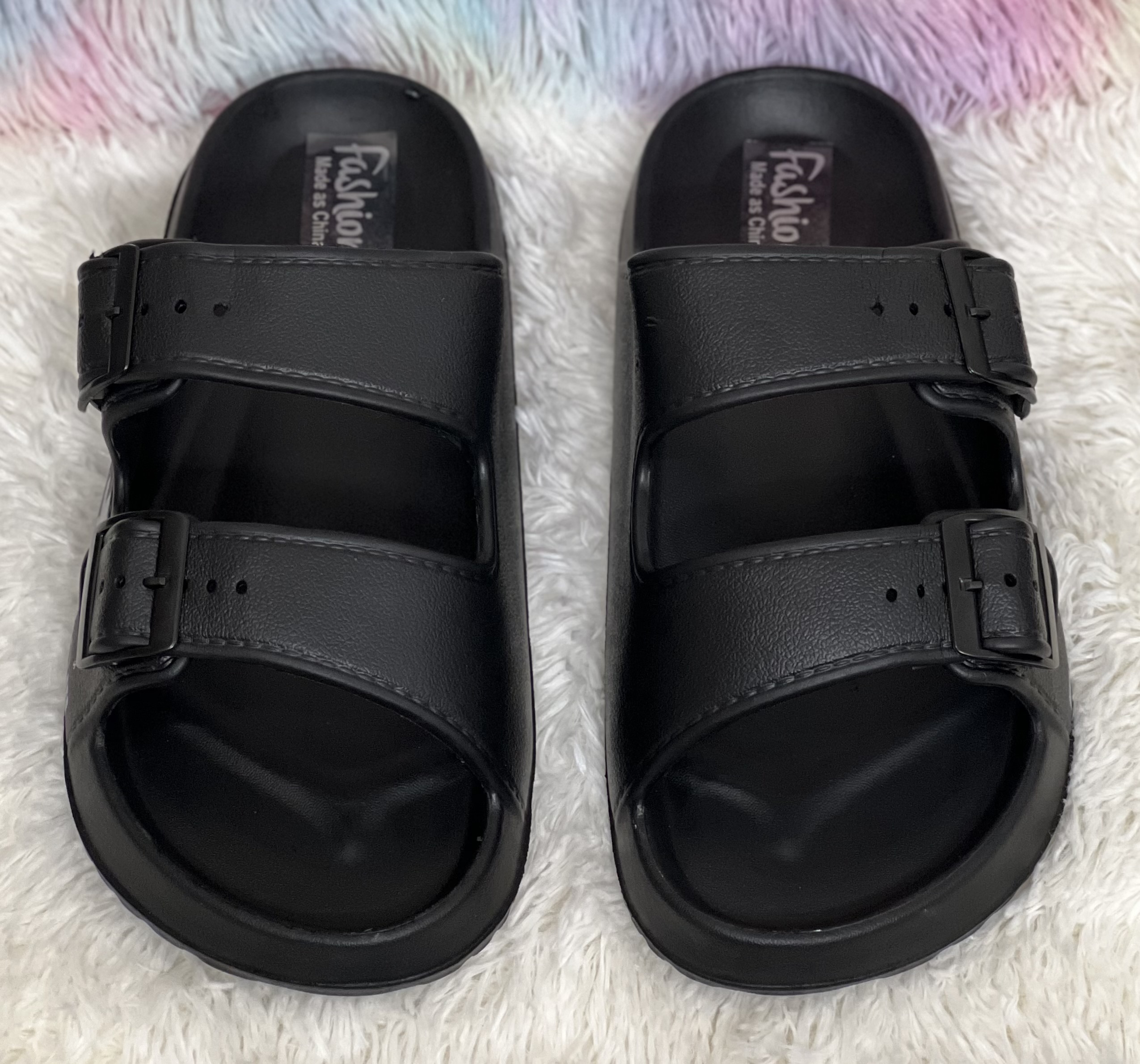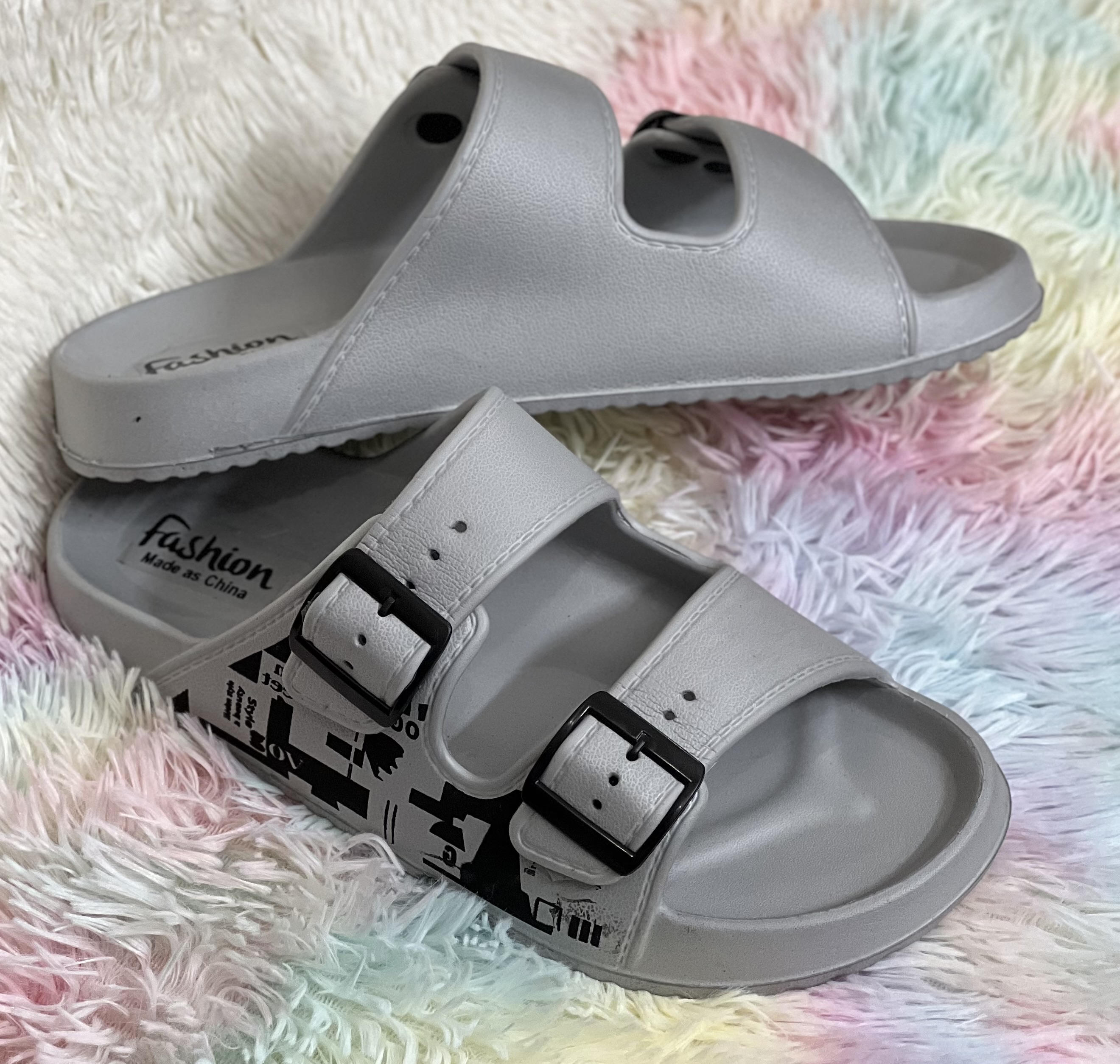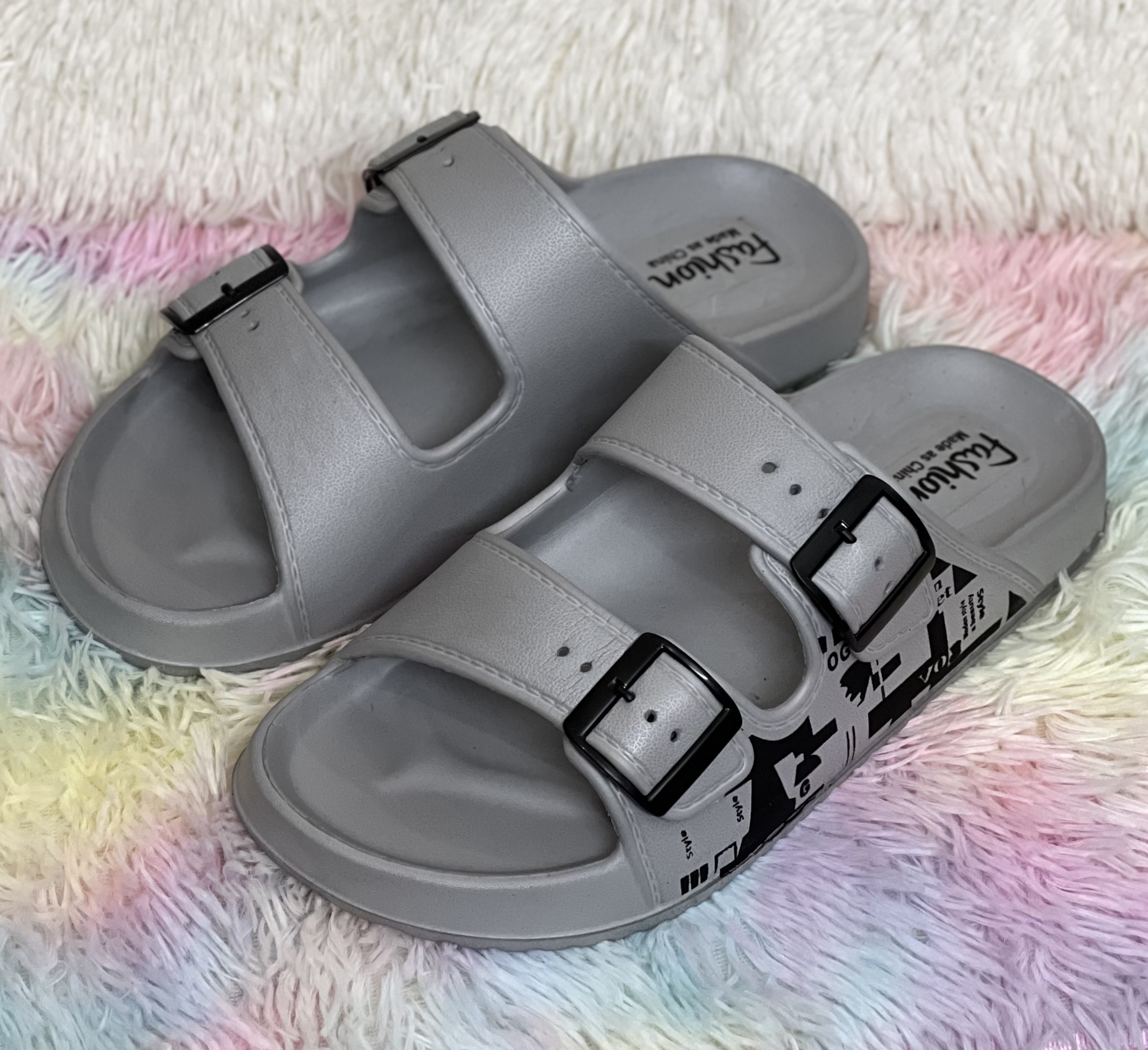 The double adjustable buckle straps ensure a secure, customized fit, while the ergonomic cushioned footbed provides superior comfort throughout the day. Finished with a bold street-inspired printed sole, these slides combine fashion and function effortlessly. Ideal for casual outings, home wear, travel, or daily use.