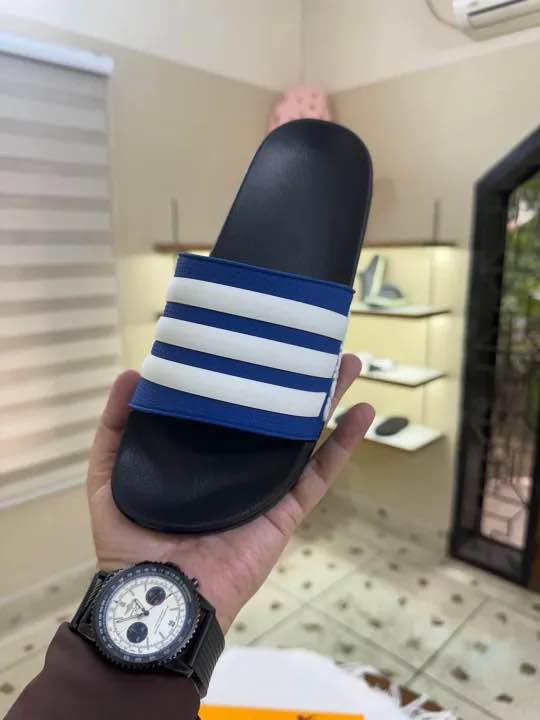#AdidasSlides #AdiletteAqua #MensSlideSandal #TrendySlides #FashionSandal #ComfortSlipper #WaterproofSlides #CasualFootwear #StylishMensShoes #TripleStripeDesign #BlueWhiteSlides #MenFootwearBD #SummerSandal #SoftEVA #NonSlipSole