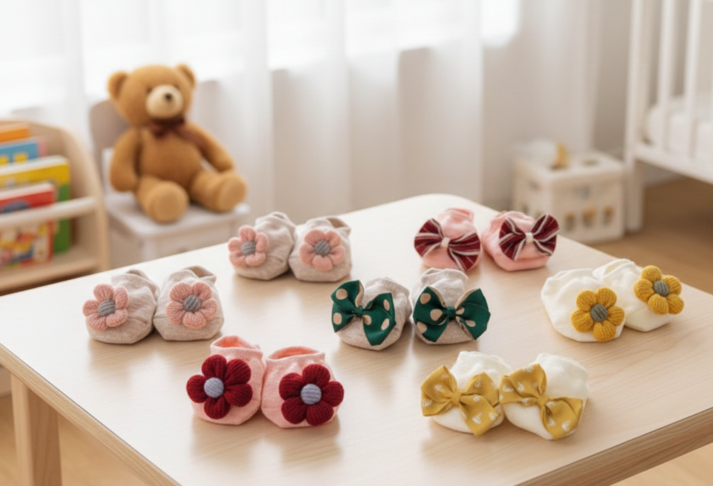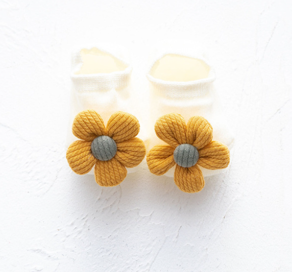 - Flower Socks: Available in various shades like dusty pink, cream, beige, and yellow with 3D flower decorations.