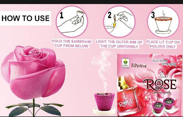 Nishan (24 Pcs) Pink Rose Sambrani Dhoop Cups for Pooja, Meditation, Festivals and Spiritual Events, Gulab Dhup Cup with Holder Plate, (2 Box) (24-Gulab) Agarbatti