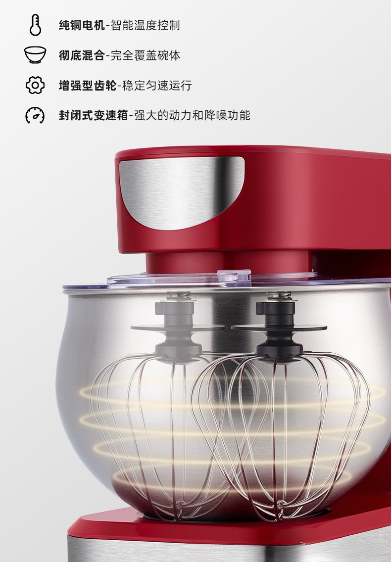 Multi-Functional Attachments: Includes kneading hook, egg whisk, mixing blade, and SUS 304 bowl