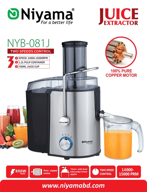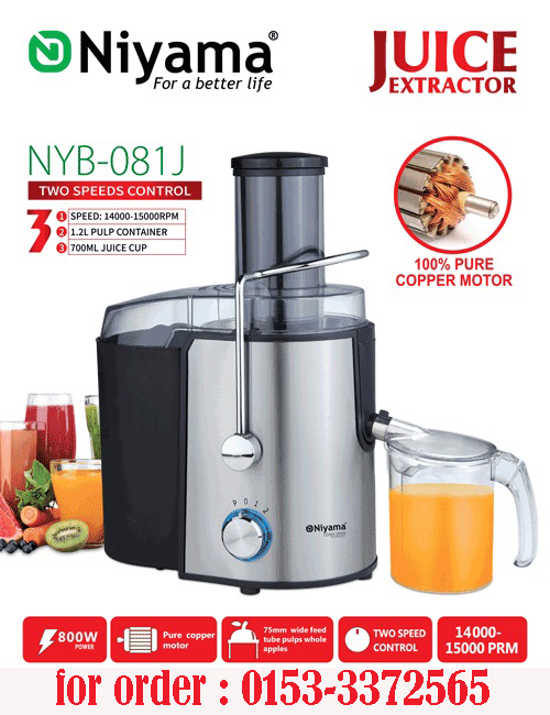 নিয়ামা জুস এক্সট্রাক্টোর। এই মেশিনে আপনি যে কোন ফলের খাটি জুস করতে পারবেন কোন ঝামেলা ছাড়া। পানি মিশানোর ঝামেলা নেই।