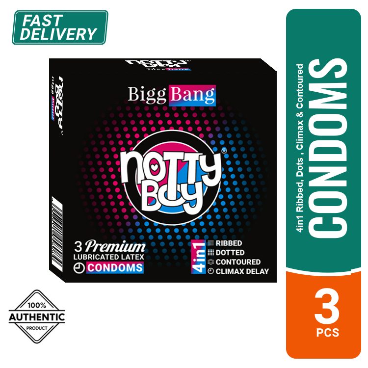 NottyBoy BiggBang 4 in1 Ribbed, Dots , Climax & Contoured Condom - 3Pcs Pack