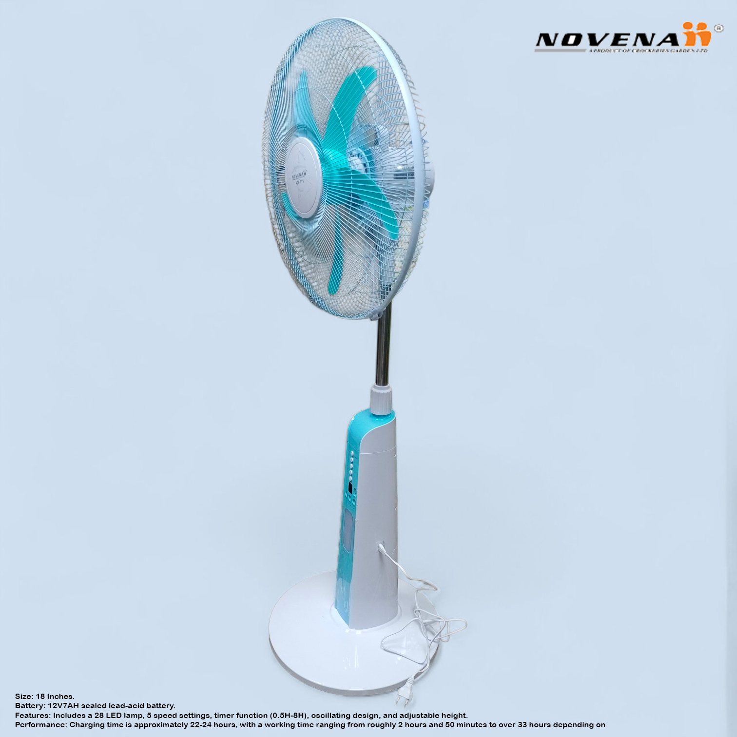 Stay cool anywhere with the Novena Rechargeable Stand Fan (Model NCF-318), designed for convenience, efficiency, and style.