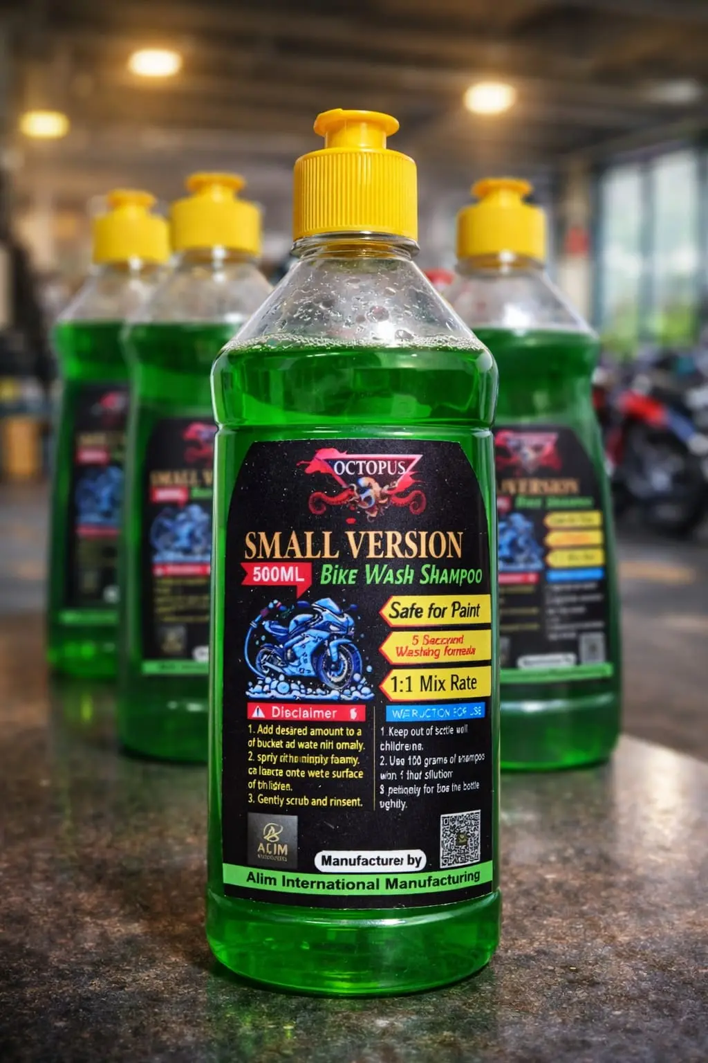 - Octopus Small Version Bike Wash Shampoo (500ml) is a premium quality cleaning solution specially formulated for motorcycles and bikes. It easily removes tough dirt, grease, and road grime while keeping the paint and surface safe.