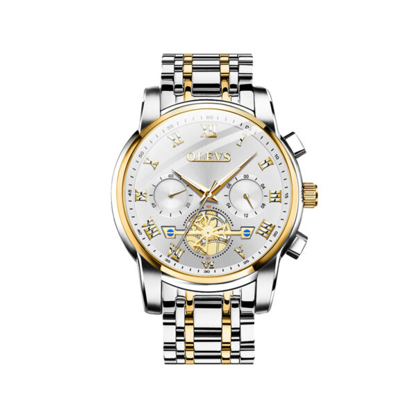 Olevs 2859 Luxury Business Chronograph Men’s Watch – Silver Gold & White