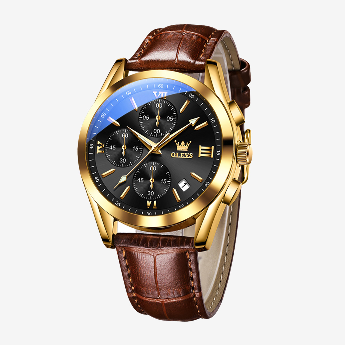 "Olevs 2872 Brown PU Leather Chronograph Wrist Watch For Men - Black & Brown "