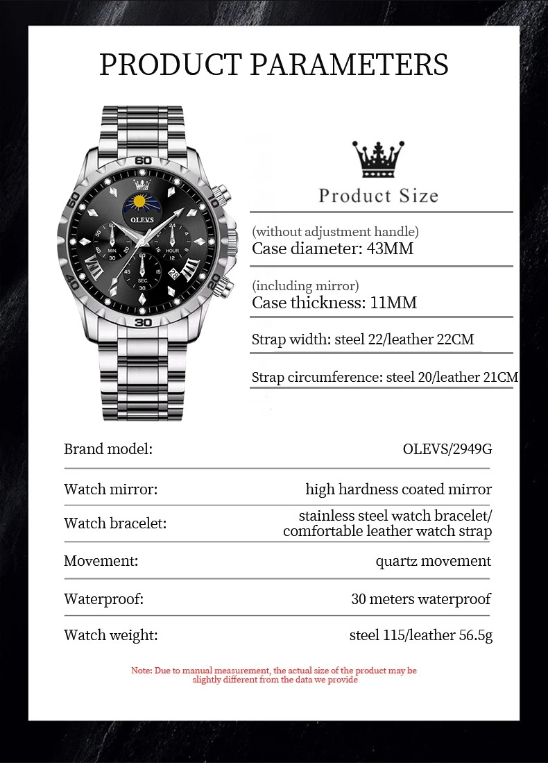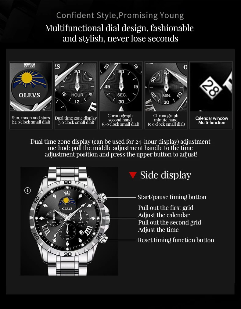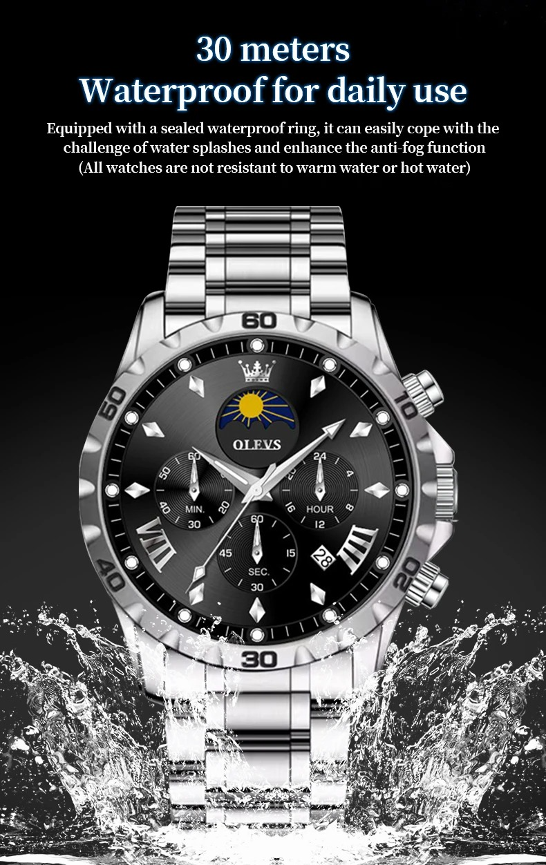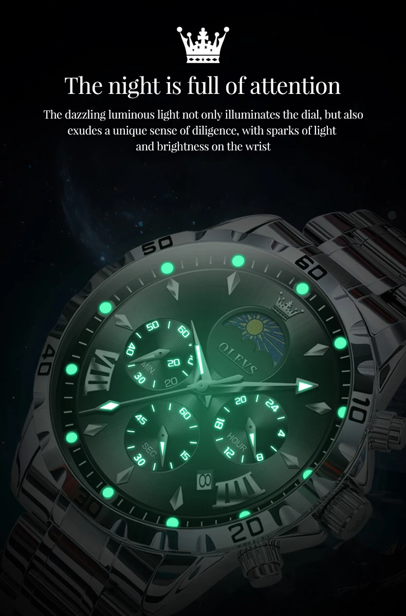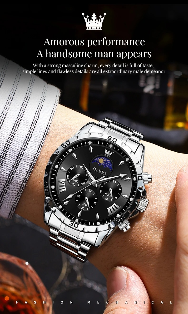 Olevs 2949 Stainless Steel Chronograph Wrist Watch For Men