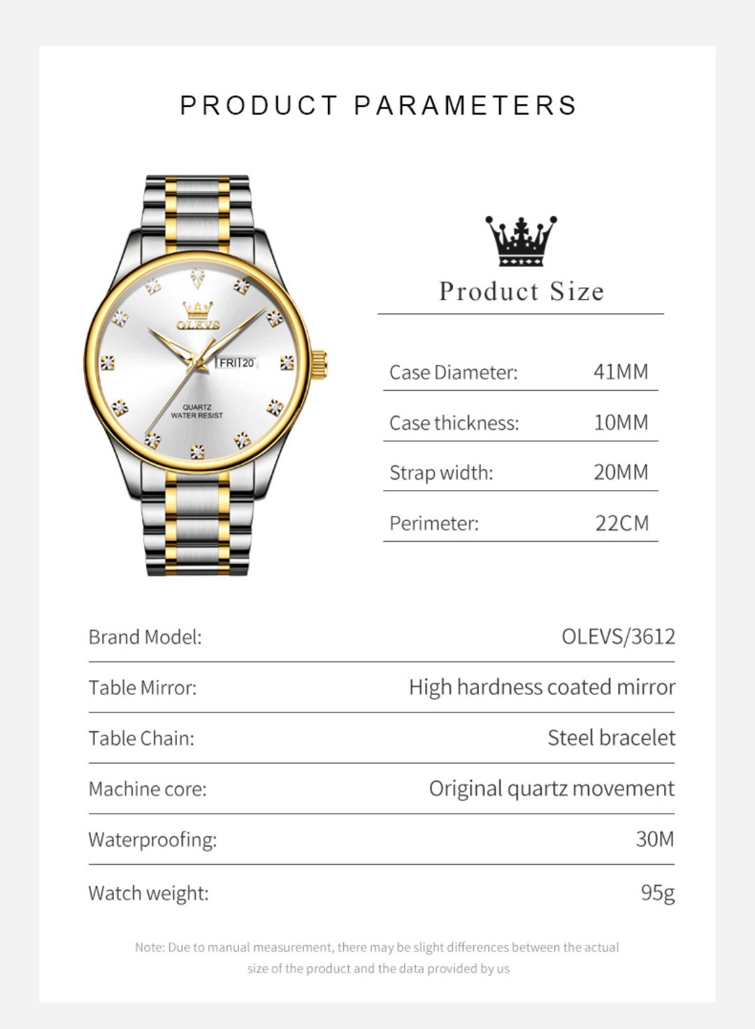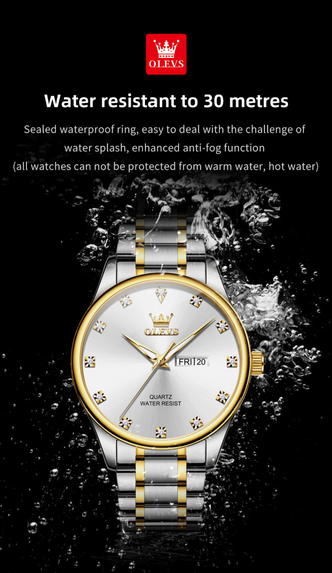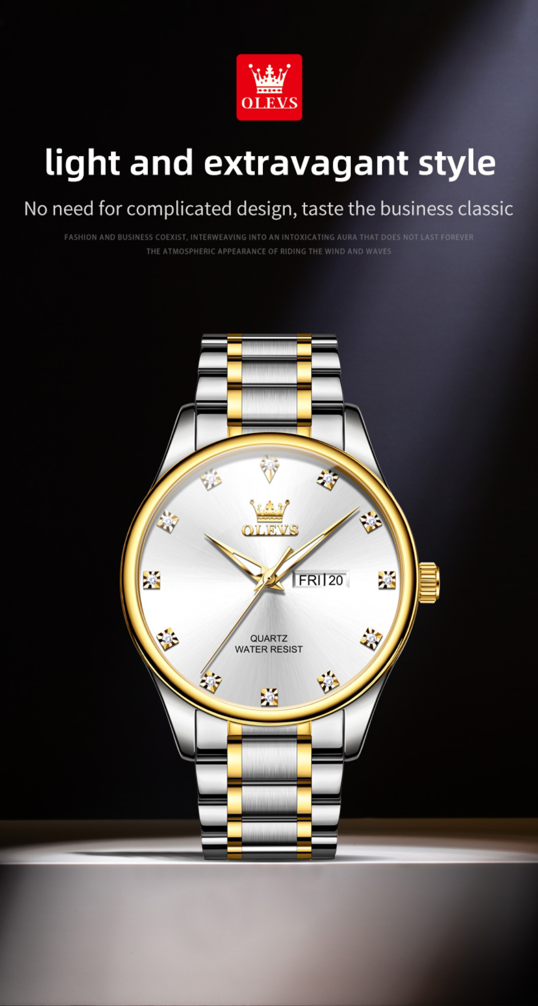 Olevs 3612G Stainless Steel Analog Wrist Watch For Men