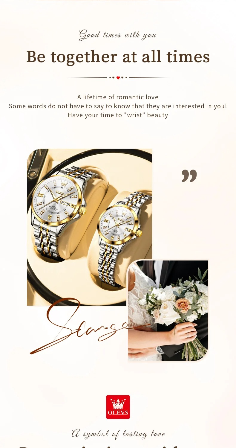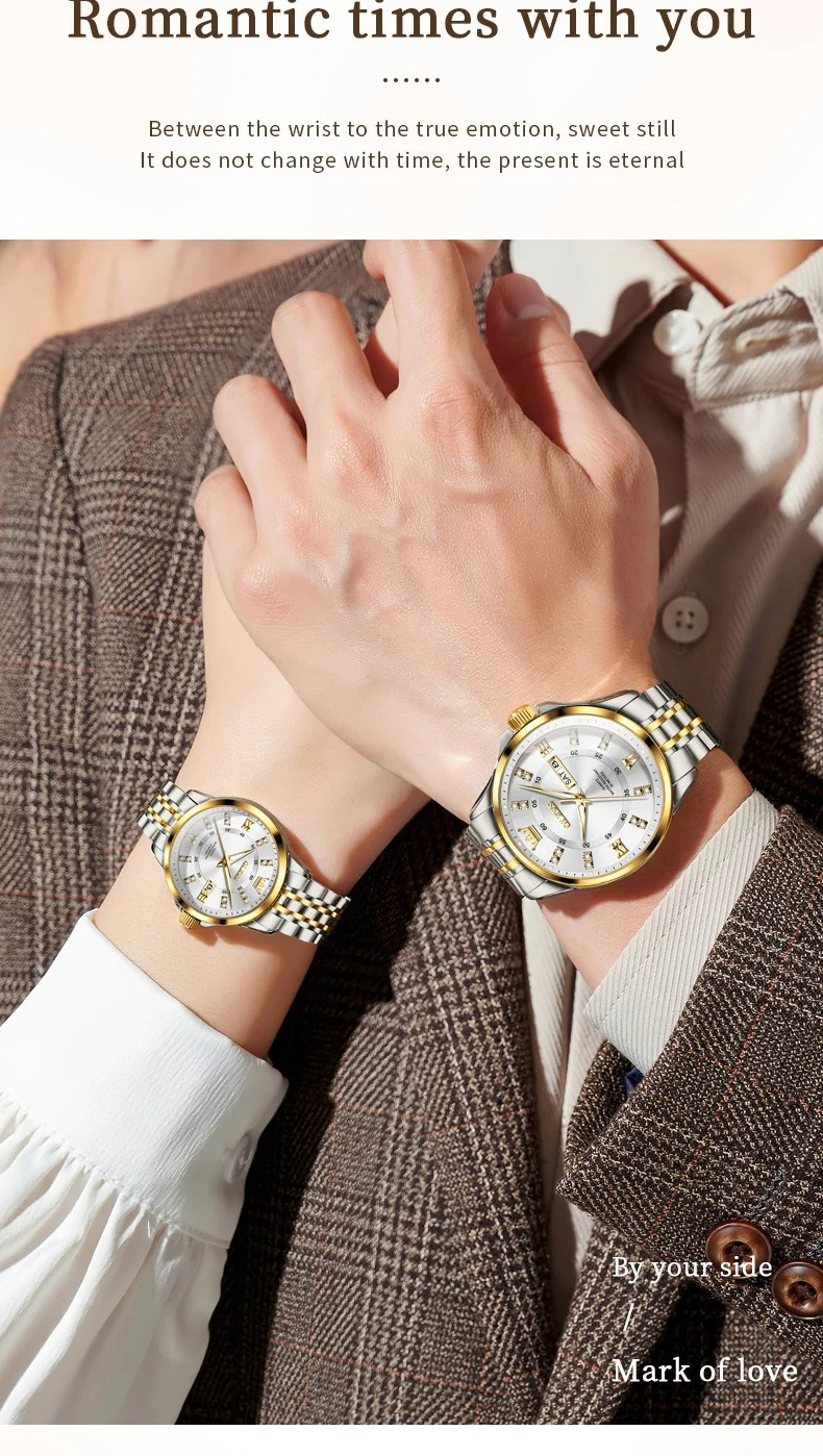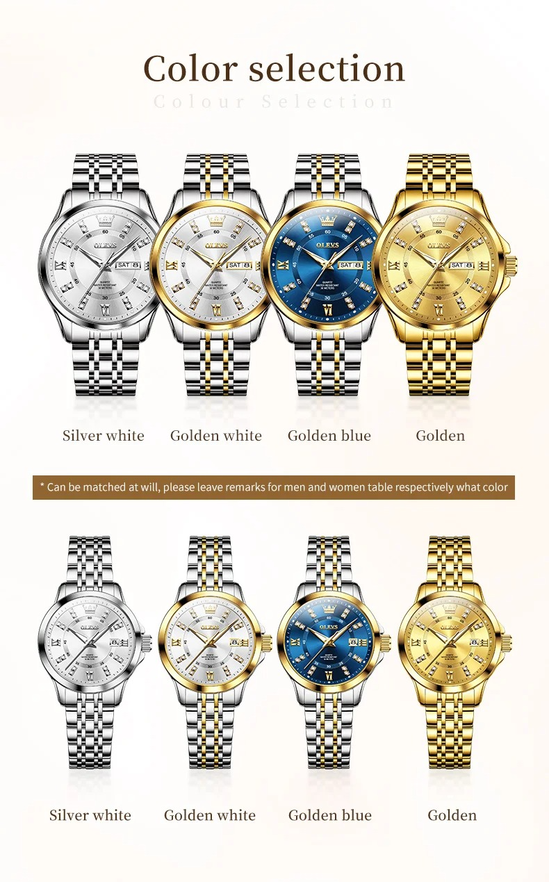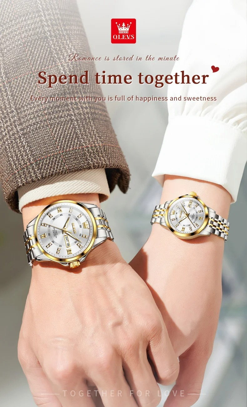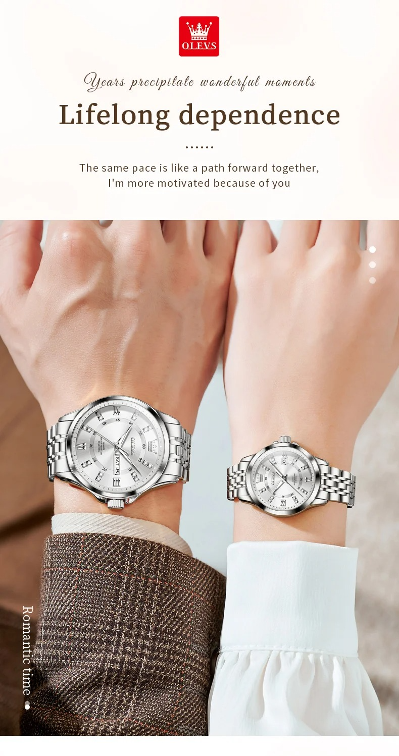 OLEVS 3620C Stainless Steel Analog Wrist Watch For Couple