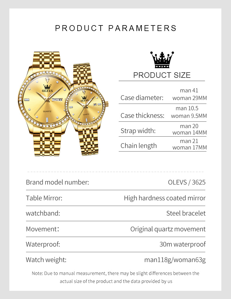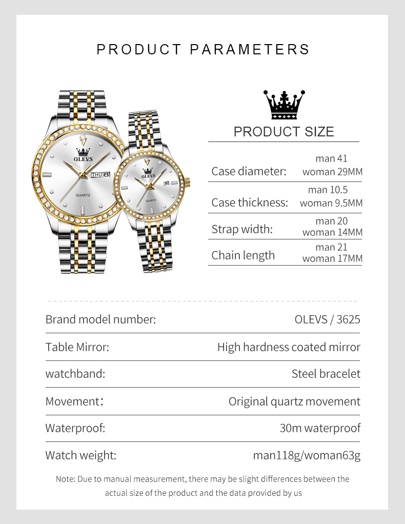 OLEVS 3625C Stainless Steel Analog Wrist Watch For Couple