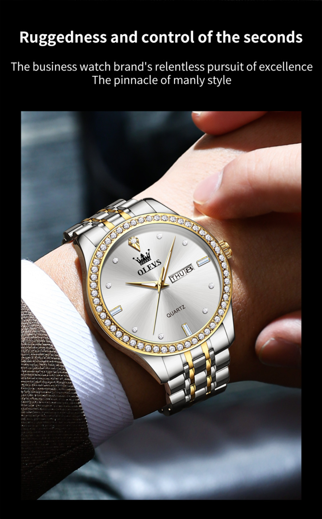 Olevs 3625G Stainless Steel Analog Wrist Watch For Men