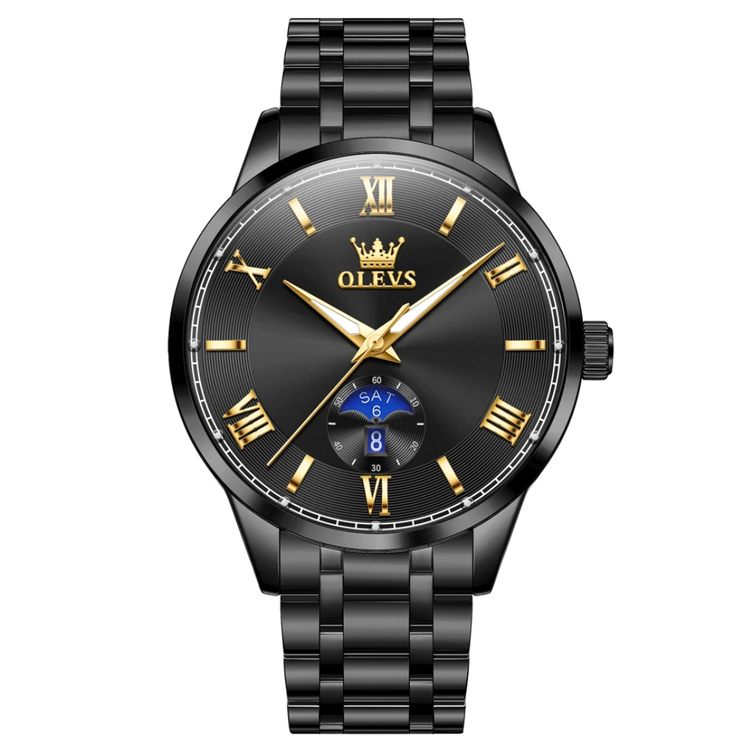 OLEVS 3638 Mens Quartz Moonphase Watch-Full Black