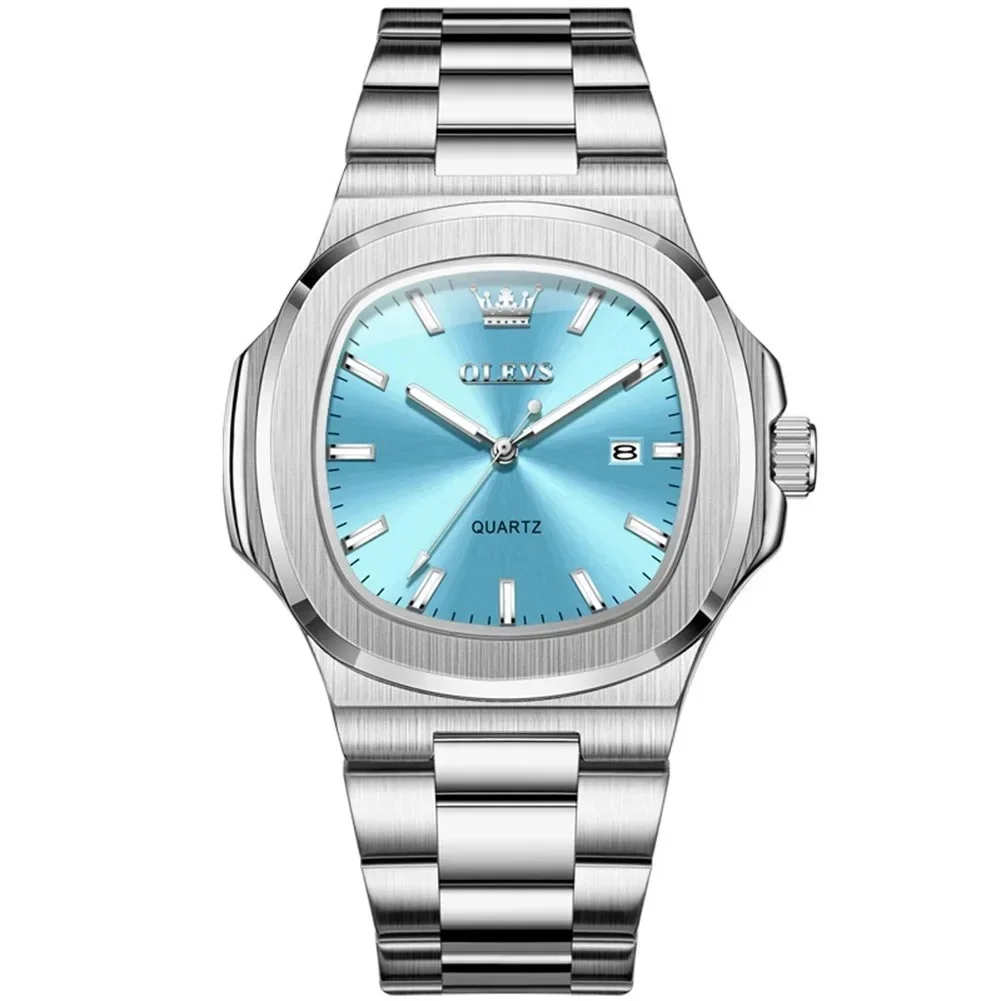 OLEVS 3696 Luxury Mens Quartz Watch-Silver and Sky Blue