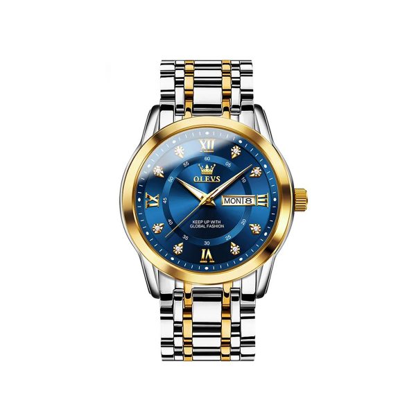OLEVS 5513 Stainless Steel Luminous Quartz Men watch- Silver Gold & Blue