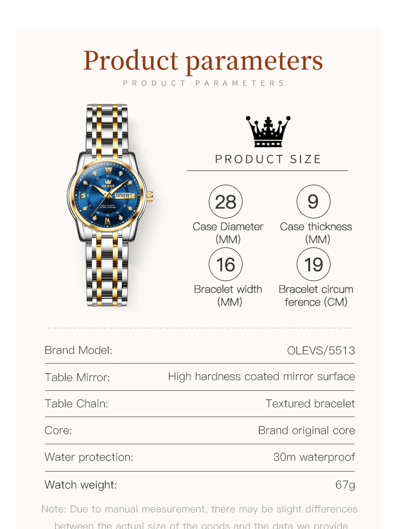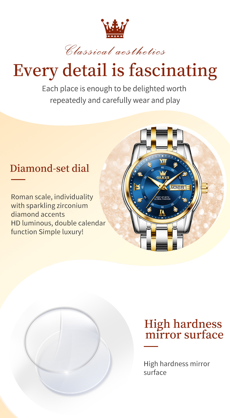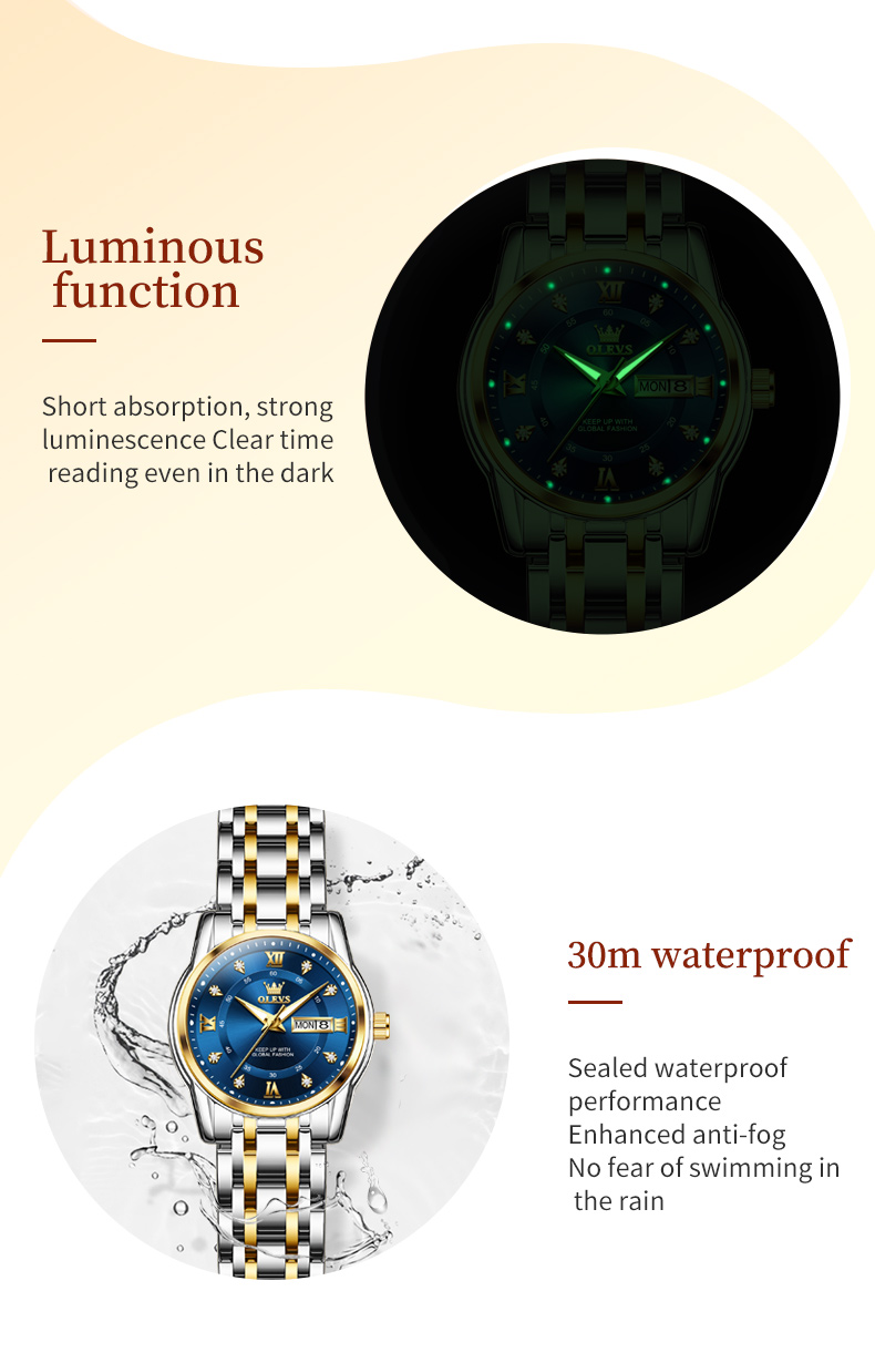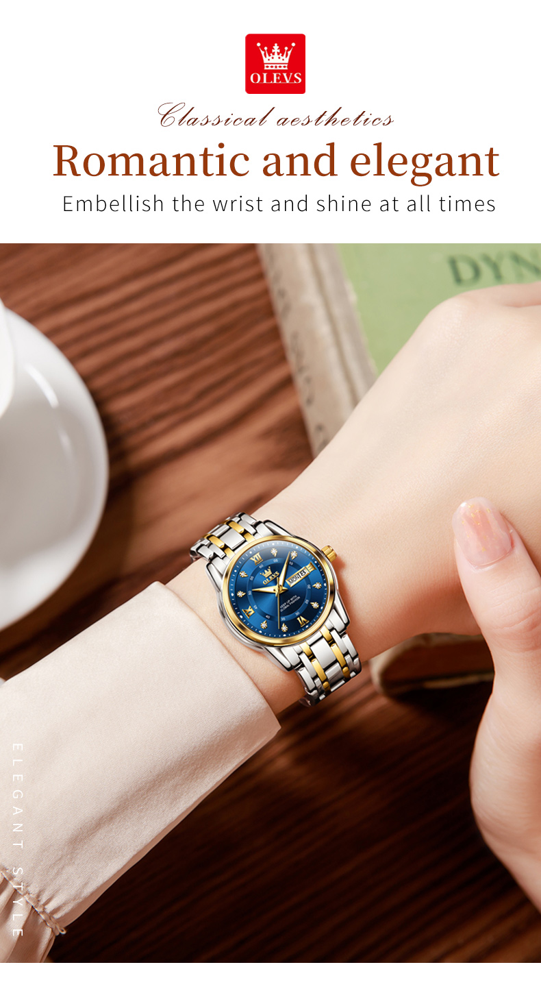 Olevs 5513L Silver Golden Two Tone Stainless Steel Analog Wrist Watch For Women