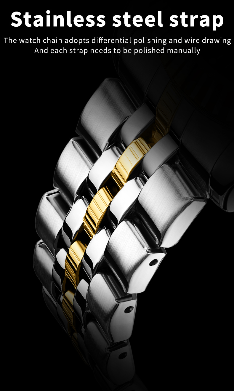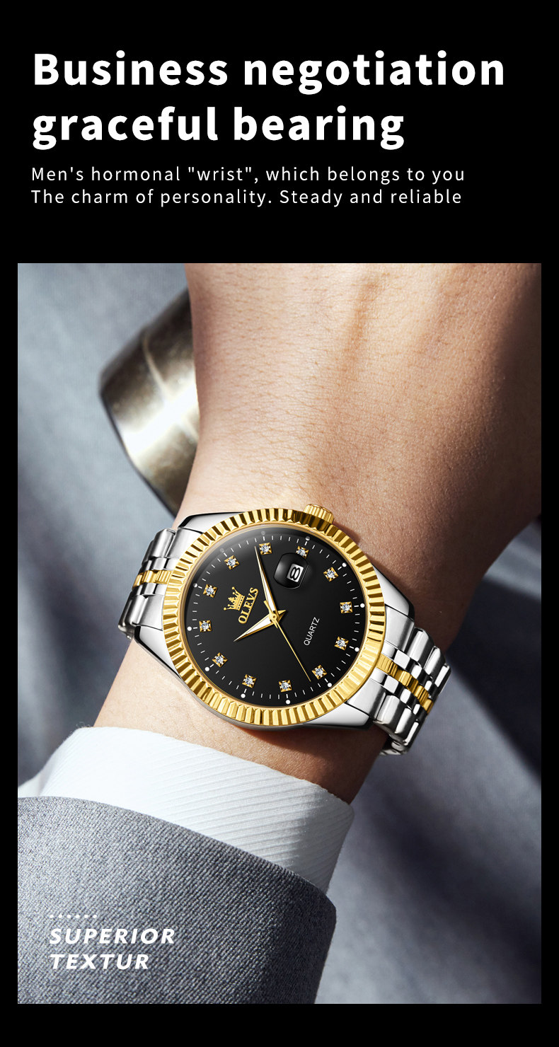 Olevs 5520 Silver Golden Two Tone Stainless Steel Analog Wrist Watch For Men