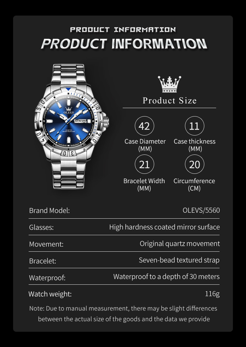Olevs 5560 Stainless Steel Analog Wrist Watch For Men