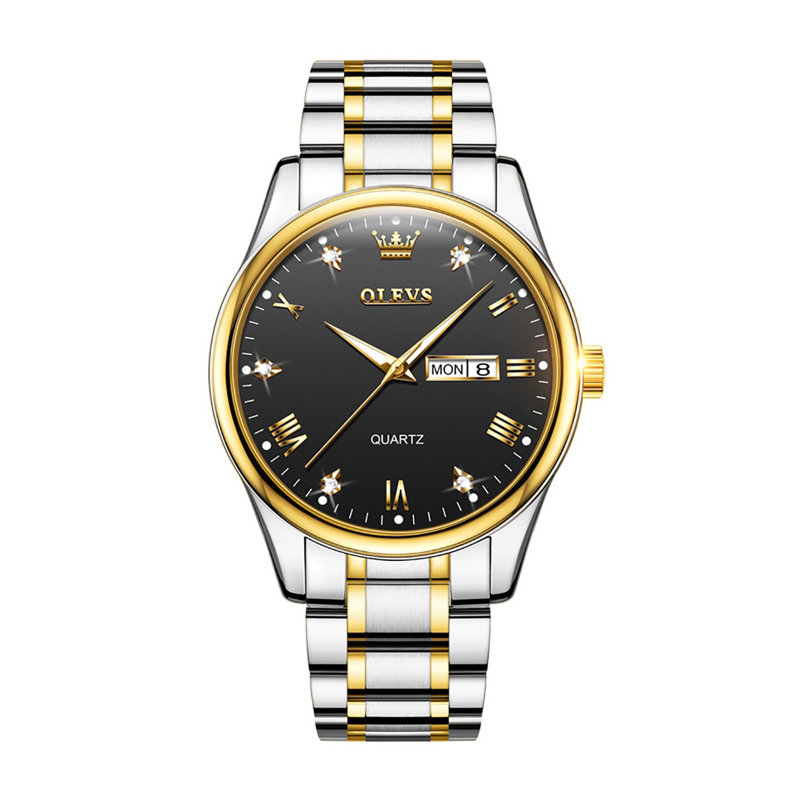 "Olevs 5563 Silver & Golden Two Tone Stainless Steel Analog Wrist Watch For Men - Black & Silver & Golden "