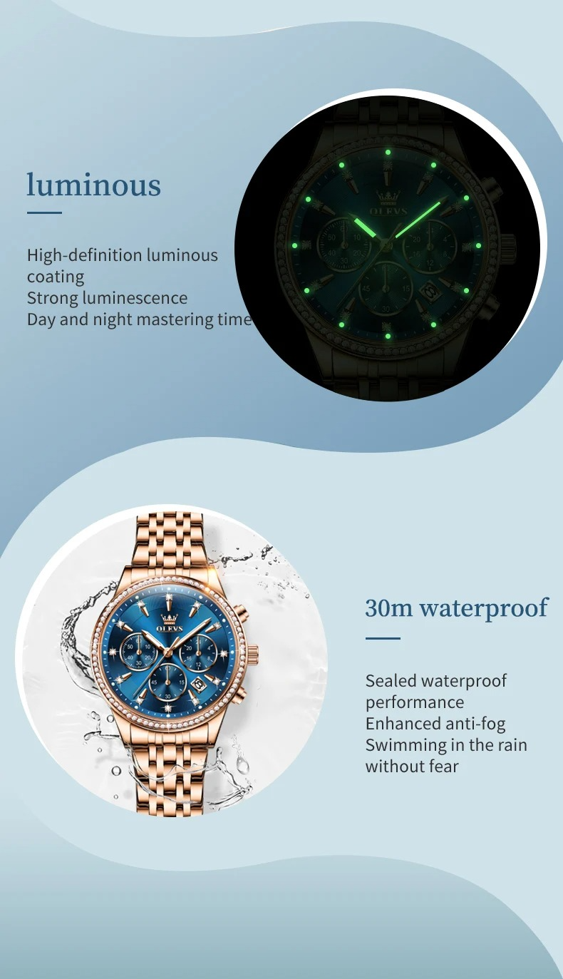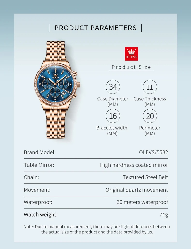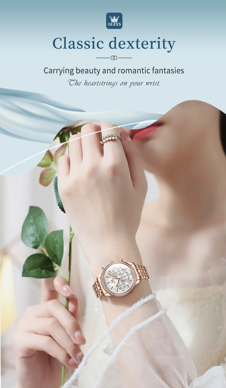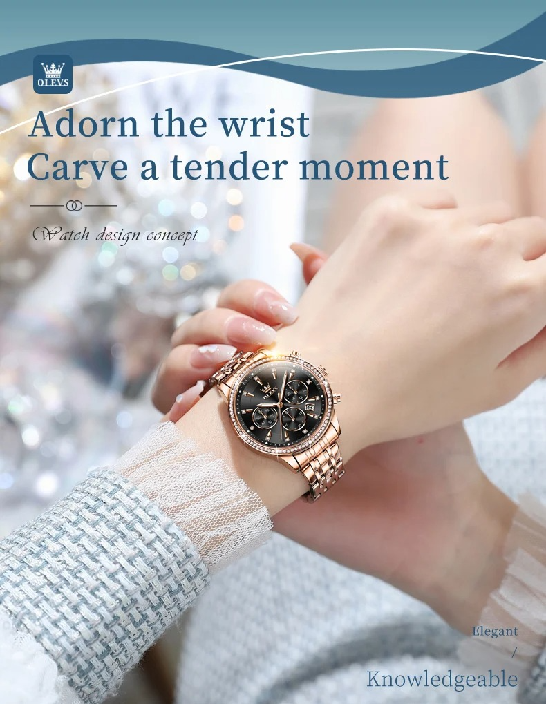 Olevs 5582 Stainless Steel Chronograph Wrist Watch For Women
