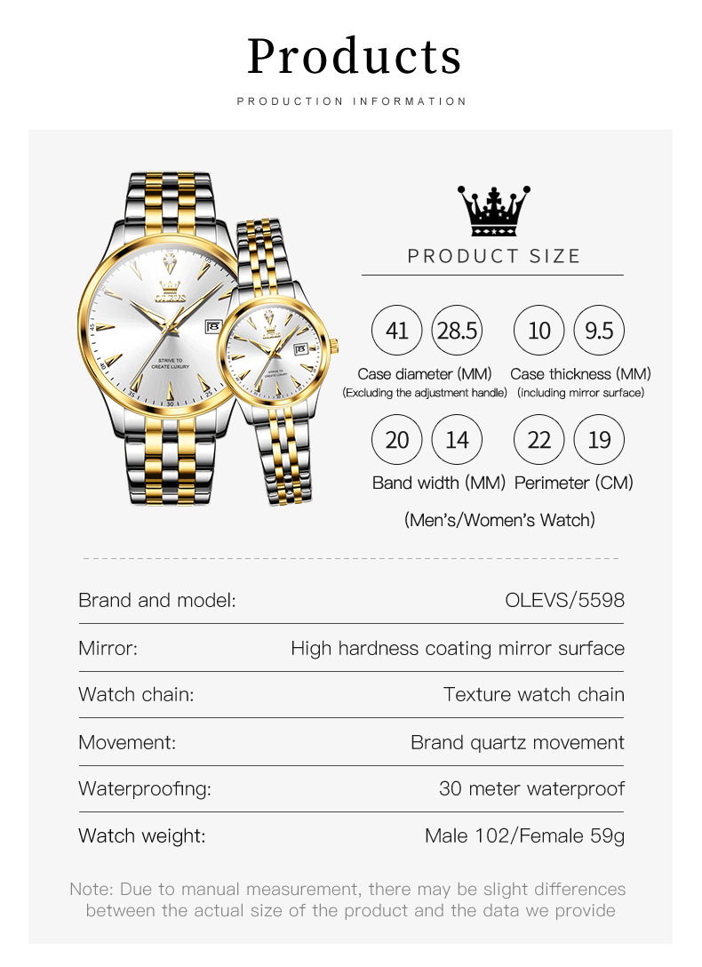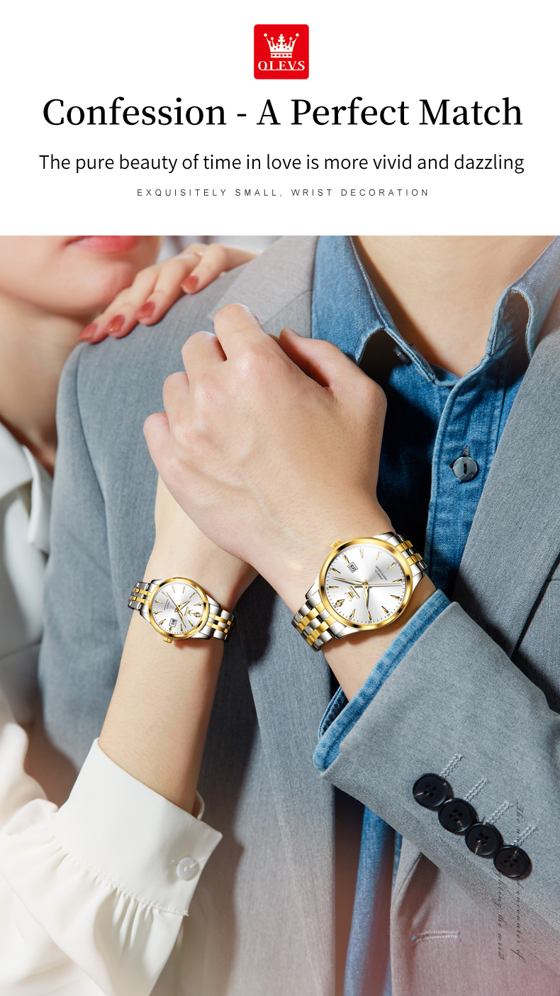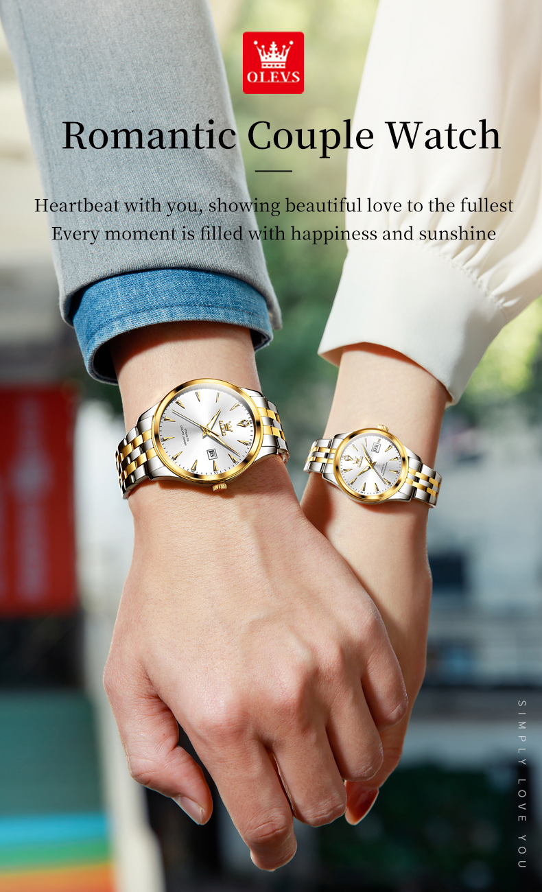 OLEVS 5598 Stainless Steel Analog Wrist Watch For Couple