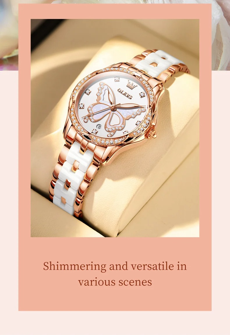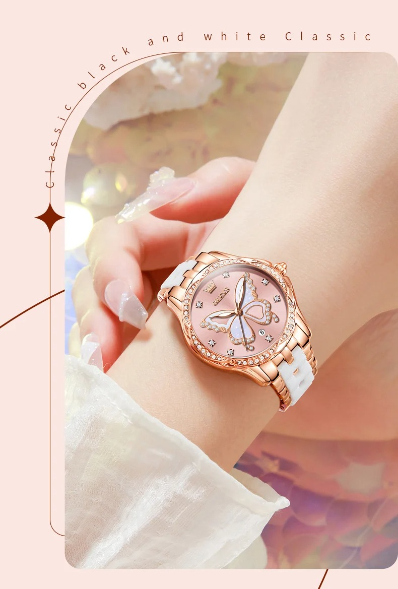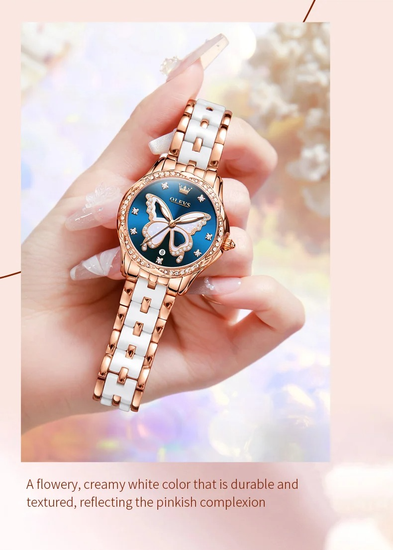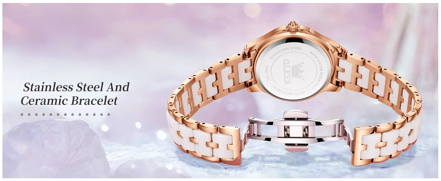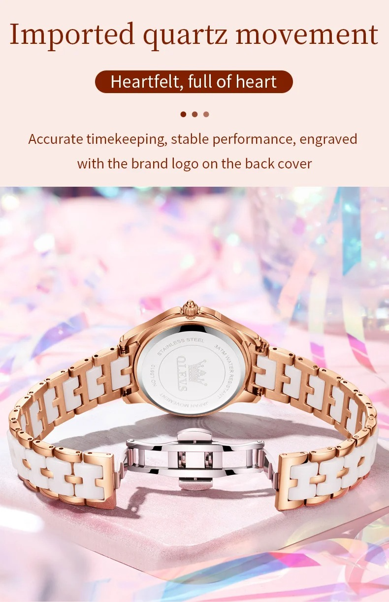 Olevs 5610 Ceramics Watchstrap Analoge Wrist Watch For Women