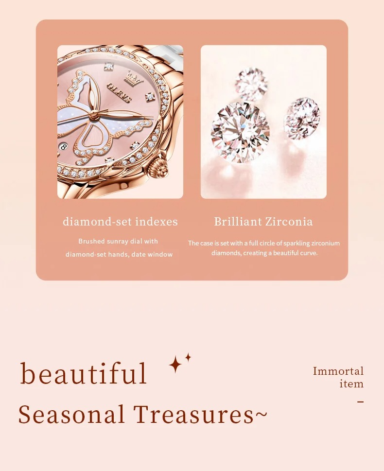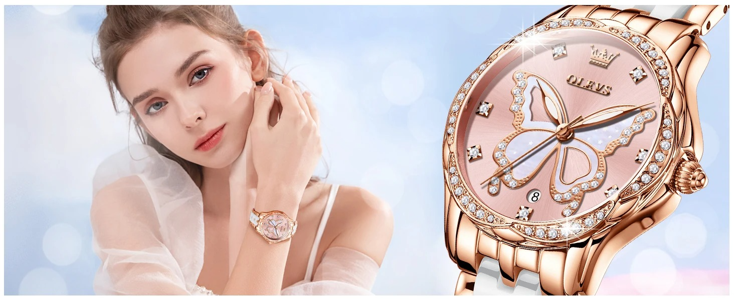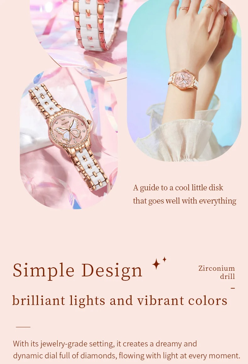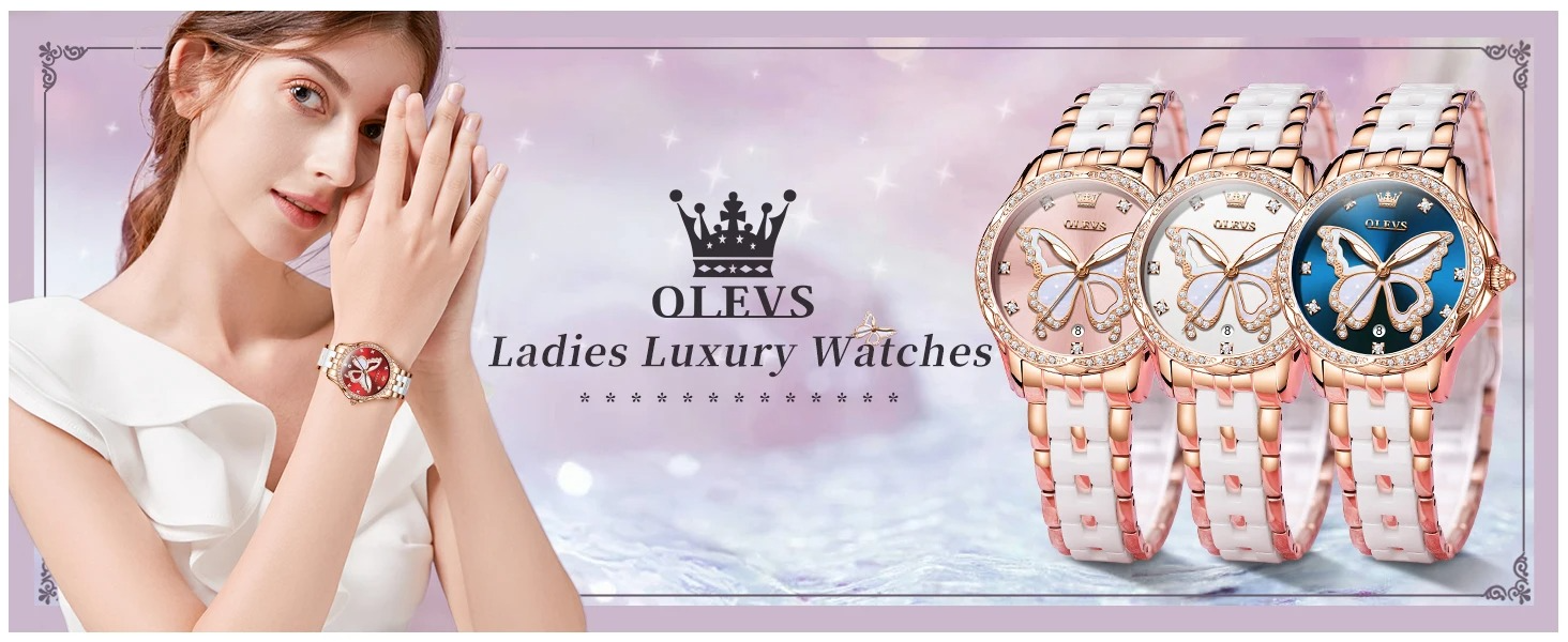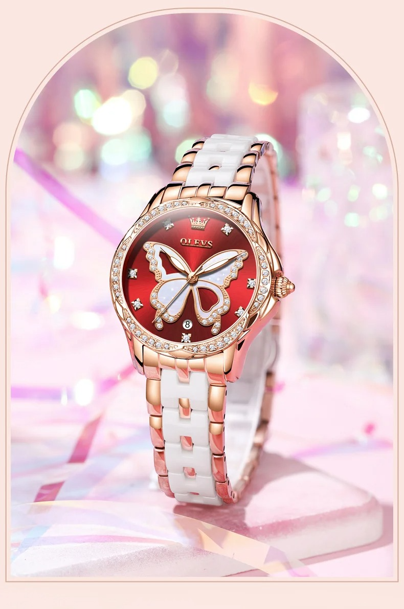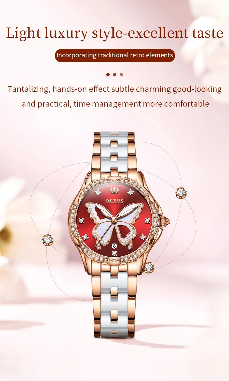 Olevs 5610 Ceramics Watchstrap Analoge Wrist Watch For Women