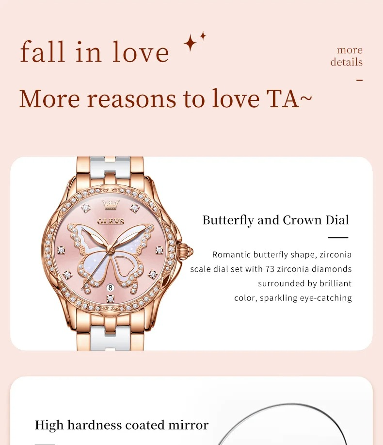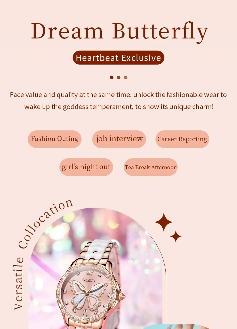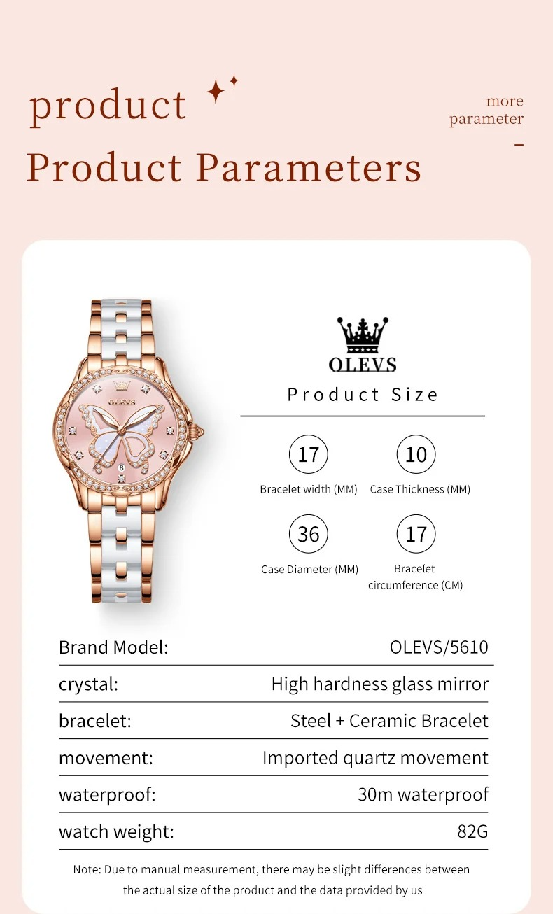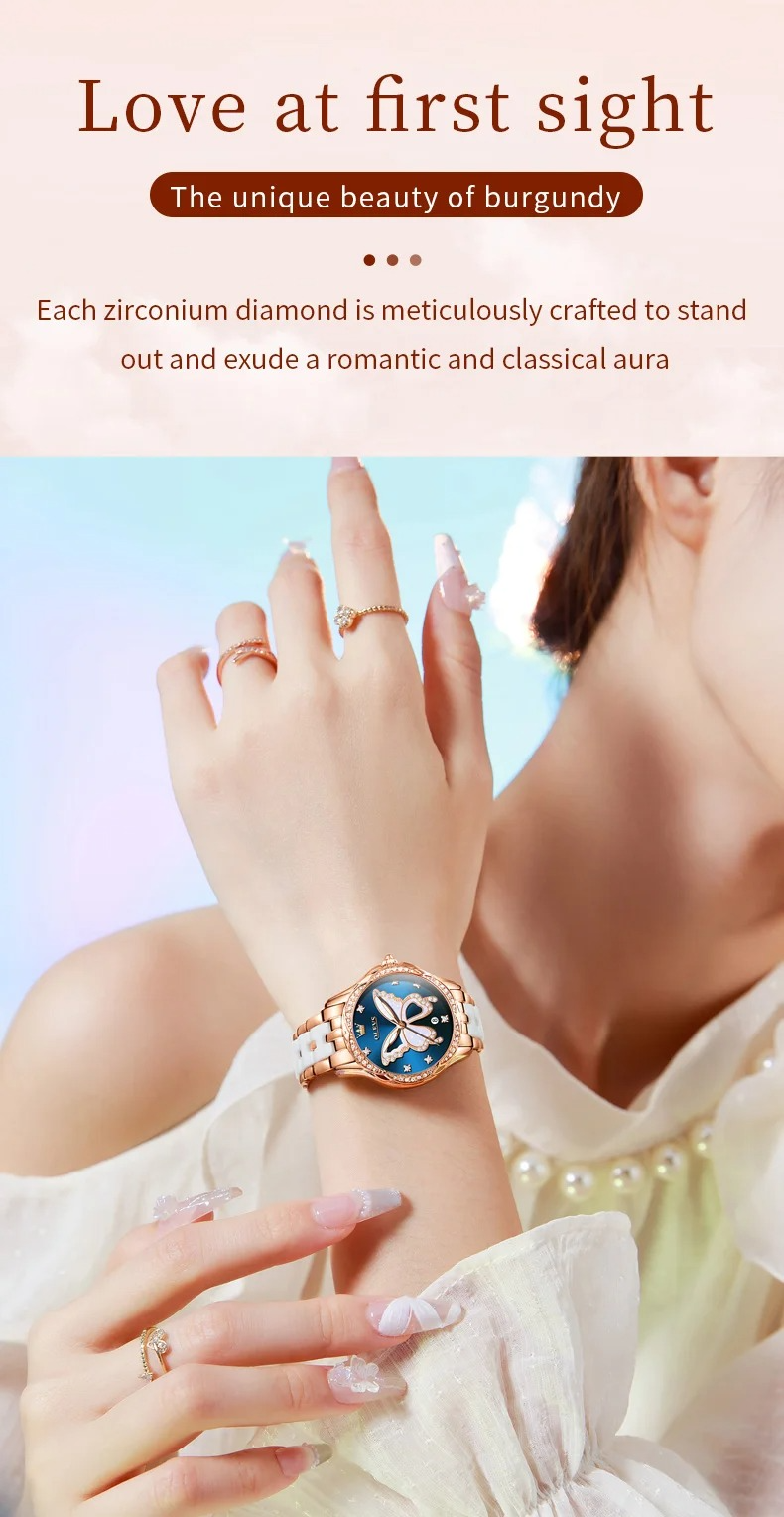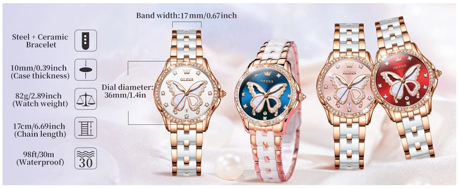 Olevs 5610 Ceramics Watchstrap Analoge Wrist Watch For Women