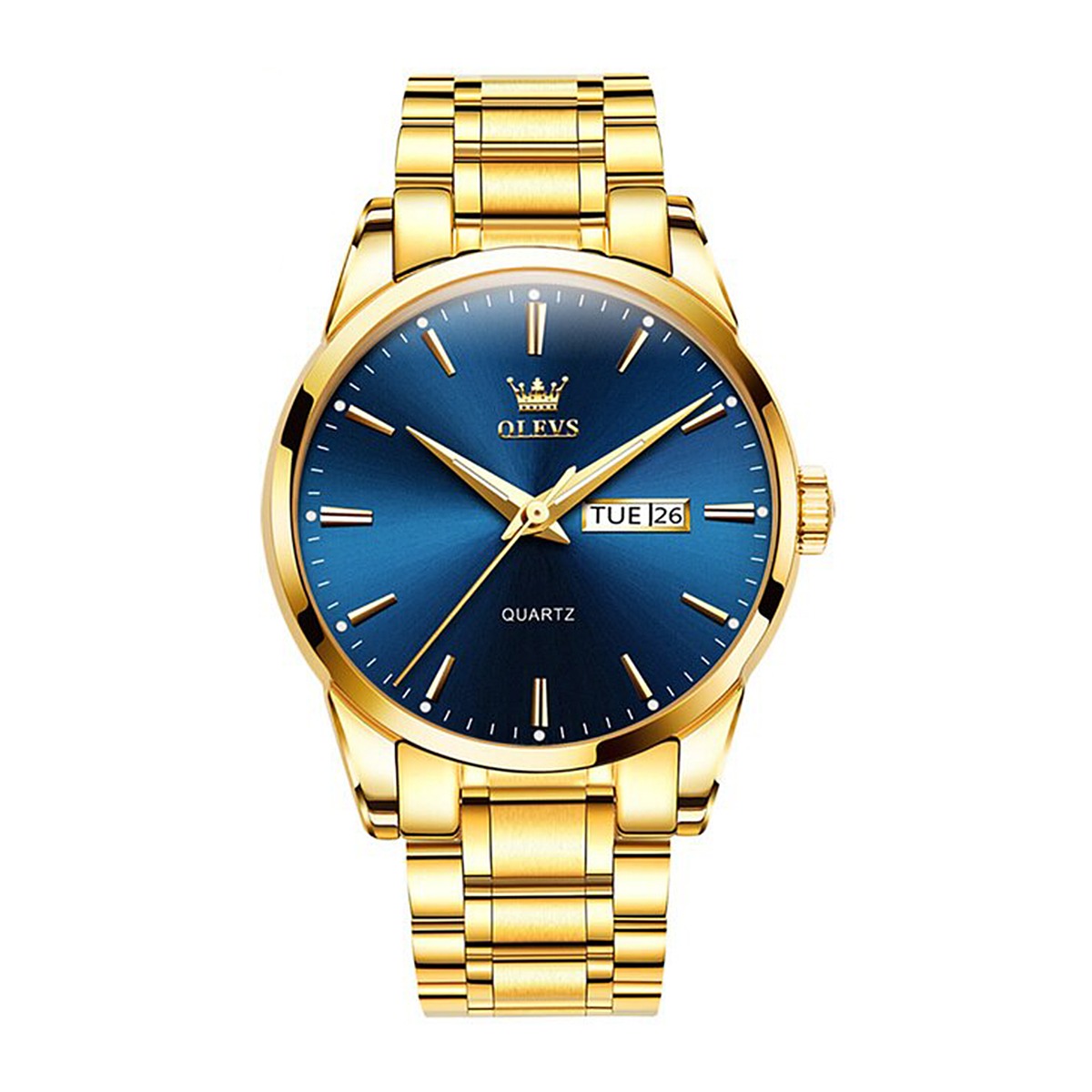 "Olevs 6898 Golden Stainless Steel Analoge Wrist Watch For Men - Royal Blue & Golden "