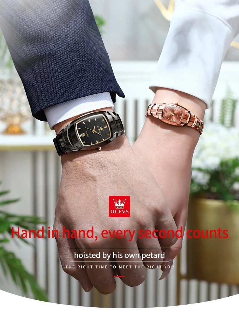 OLEVS 7006C Black & RoseGold Tungsten Steel Analog Wrist Watch For Couple