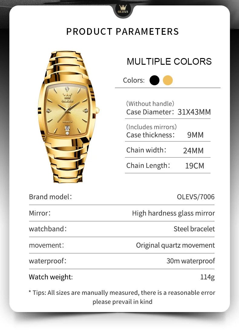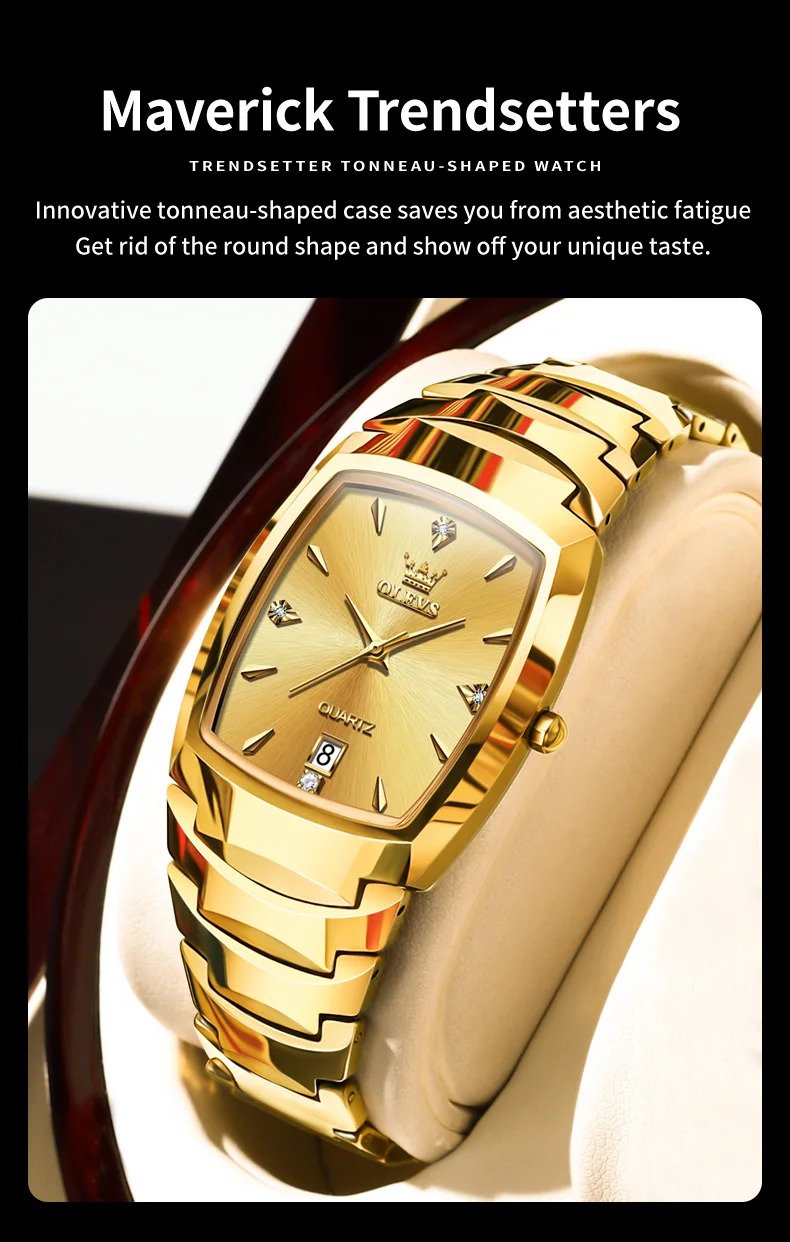 Olevs 7006G Tungsten Steel Analoge Wrist Watch For Men