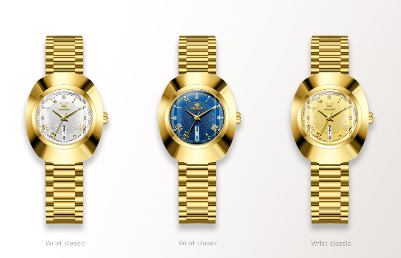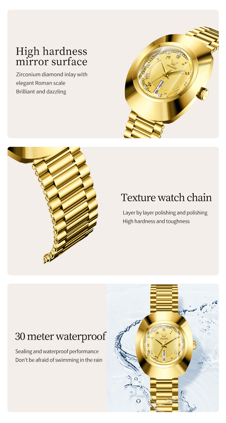 Olevs 7008 Golden Stainless Steel Analoge Wrist Watch For Women