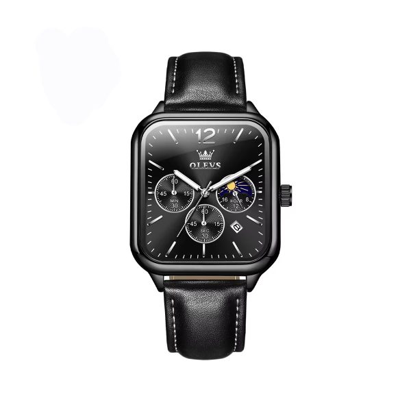 OLEVS 9914 Classic Leather Strap Men’s Watch-Full Black