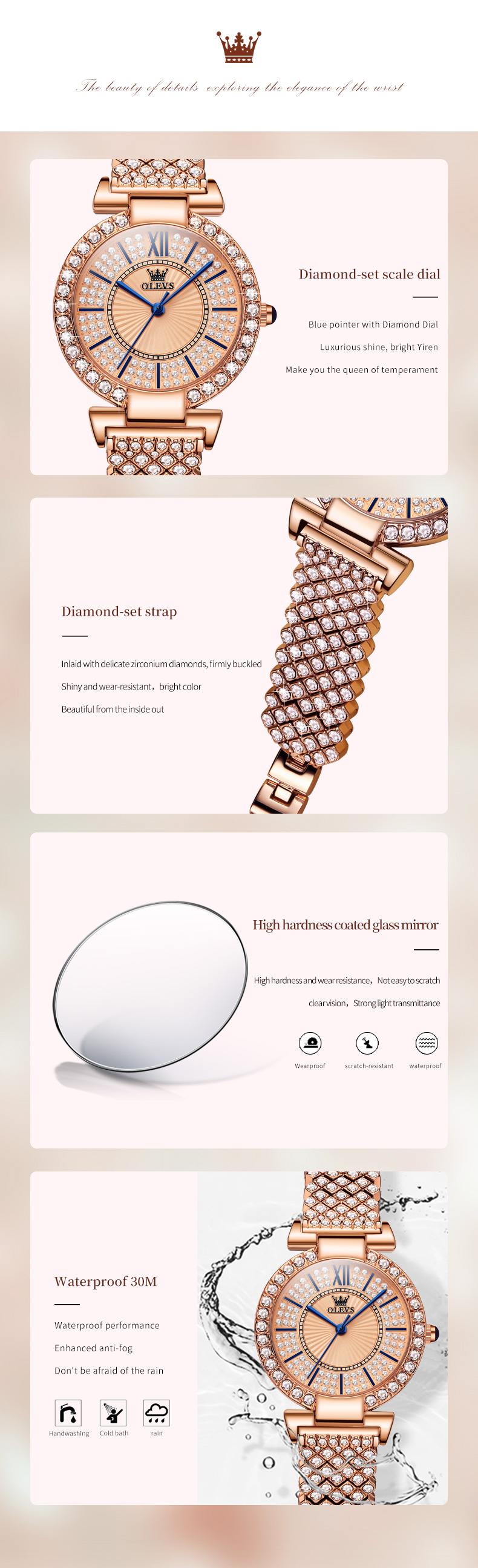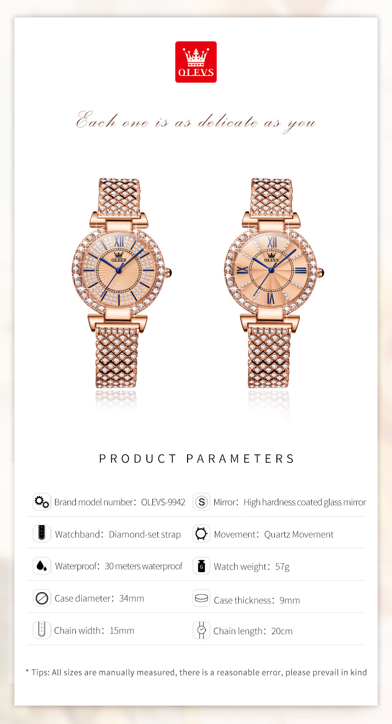 Olevs 9942 RoseGold Stainless Steel Analog Wrist Watch For Women