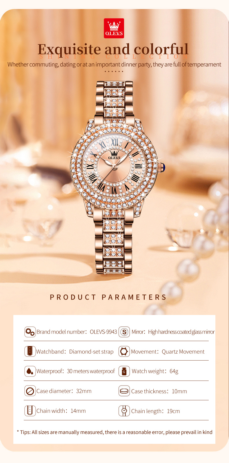 Olevs 9943 RoseGold Stainless Steel Analog Wrist Watch For Women