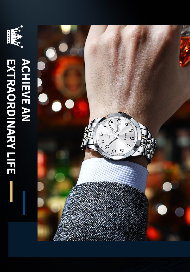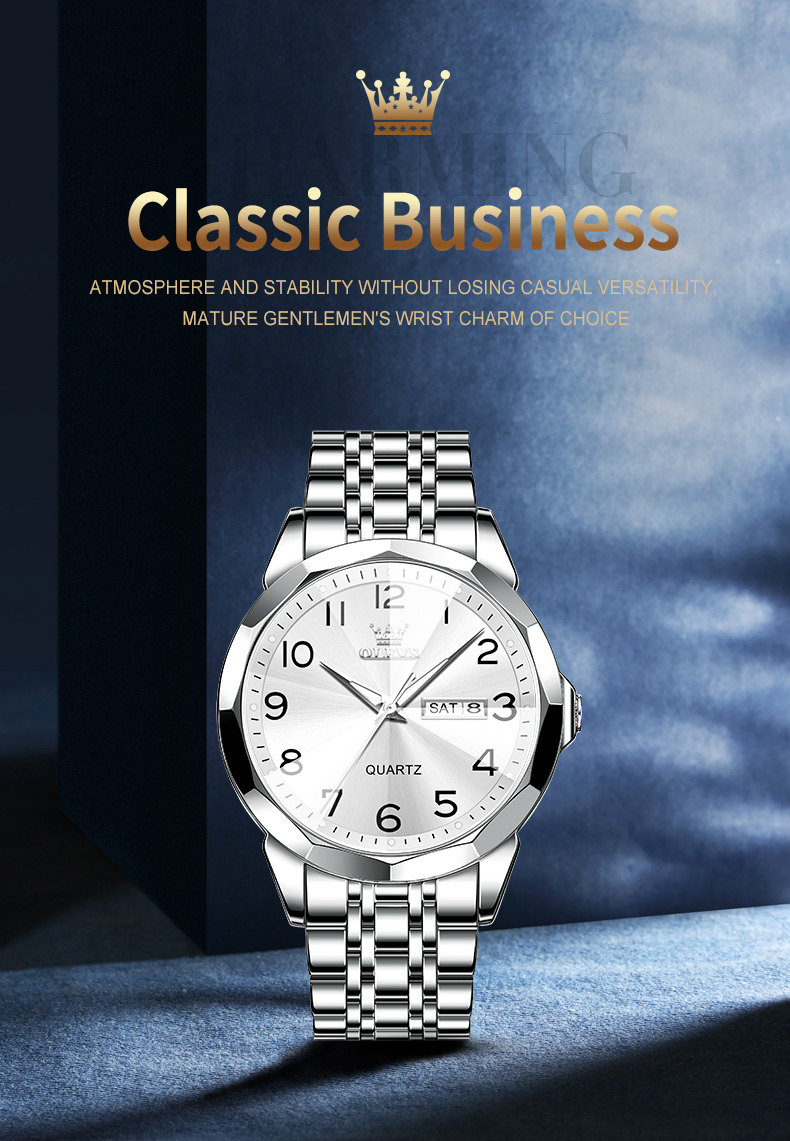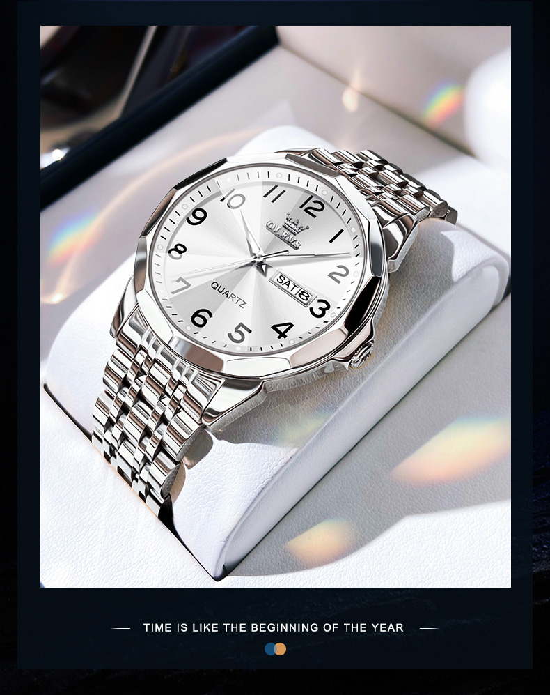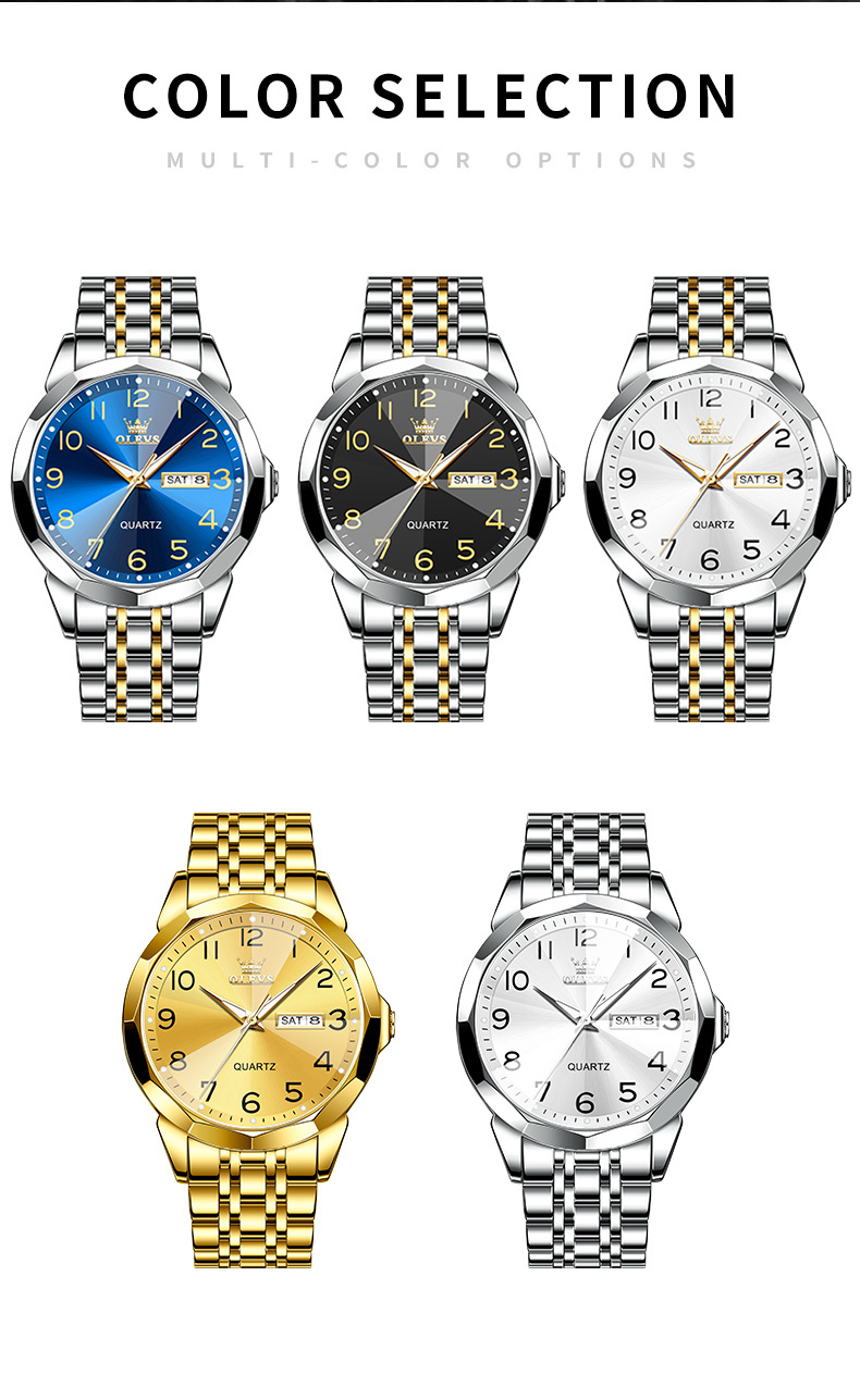 Olevs 9970G Silver Golden Two Tone Stainless Steel Analog Wrist Watch For Men