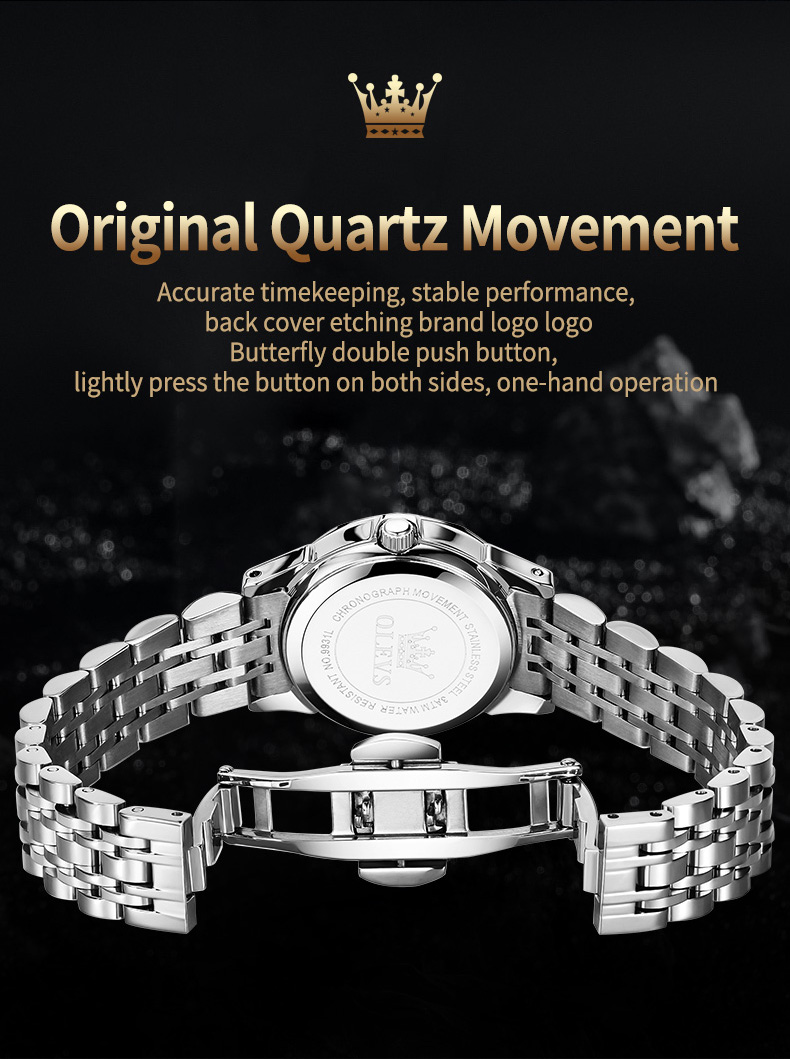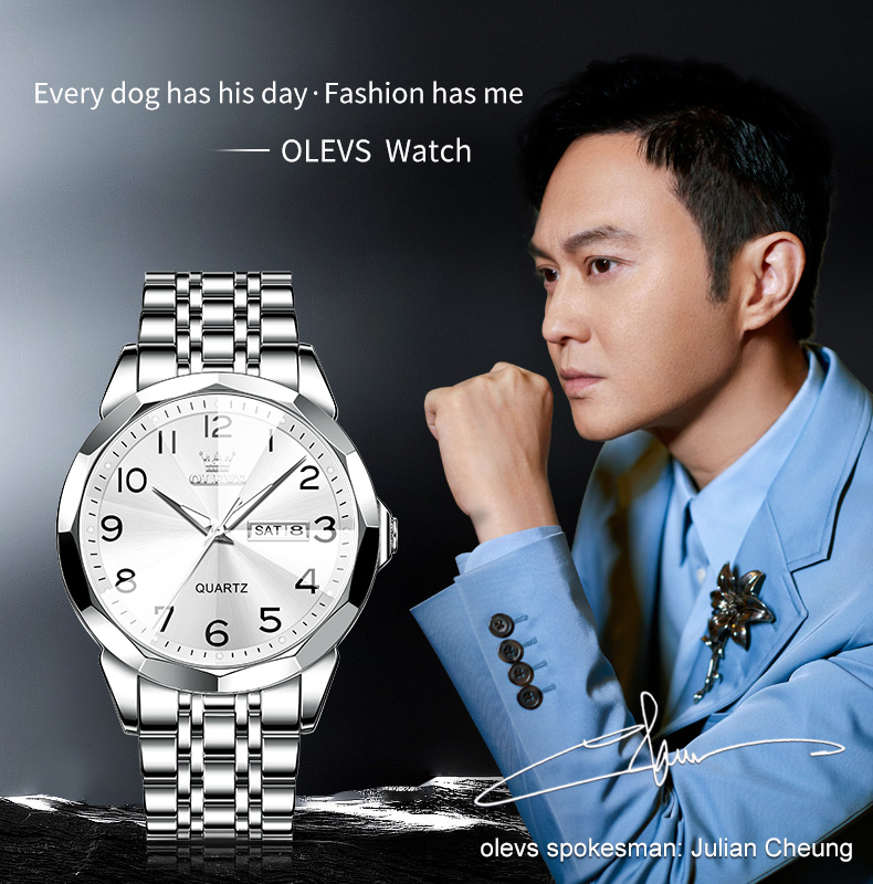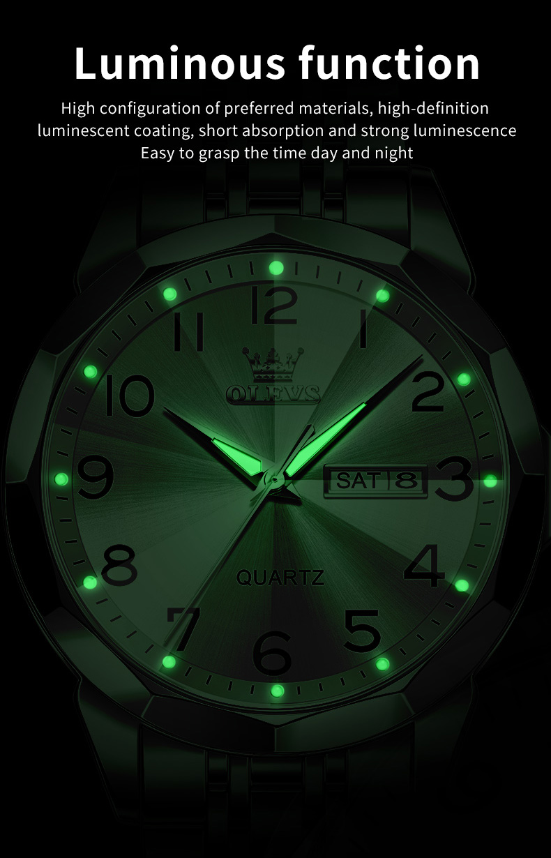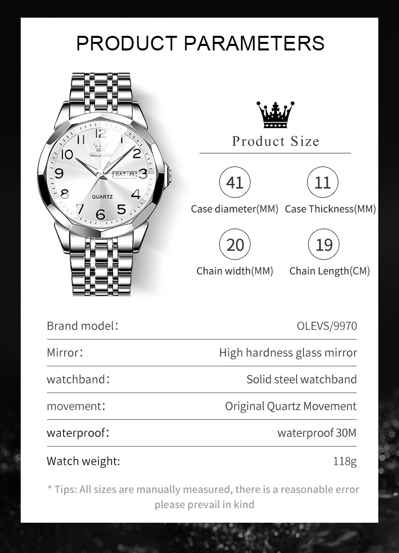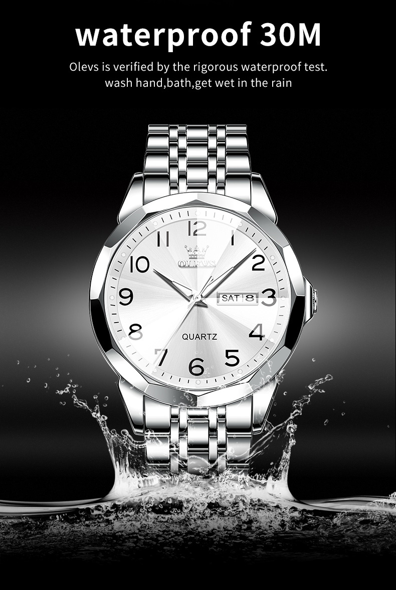 Olevs 9970G Silver Golden Two Tone Stainless Steel Analog Wrist Watch For Men