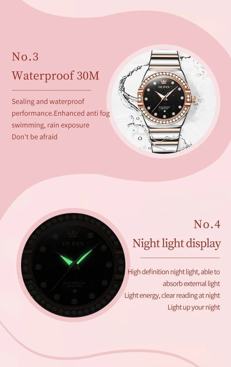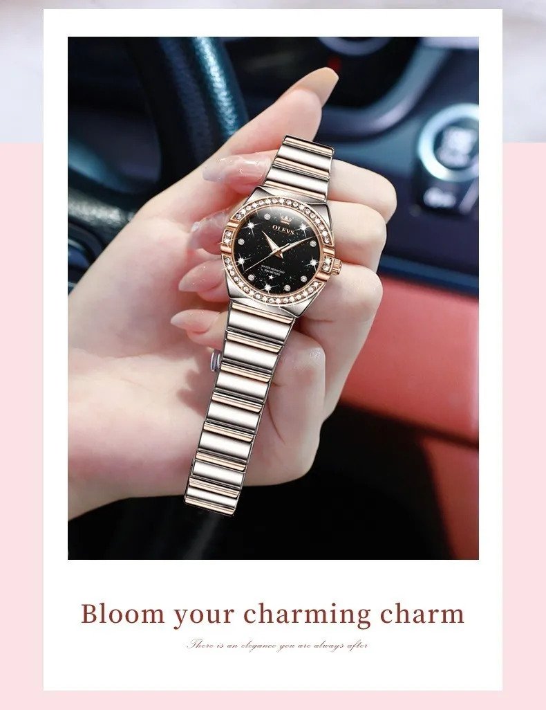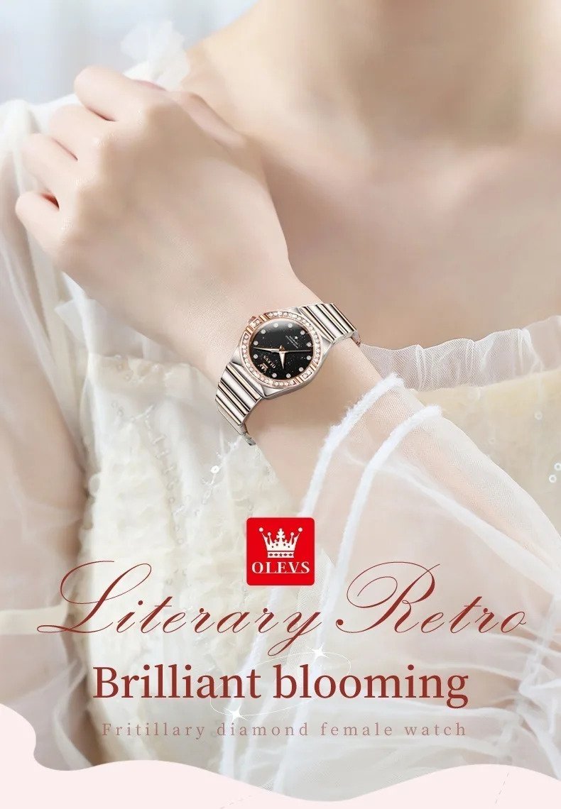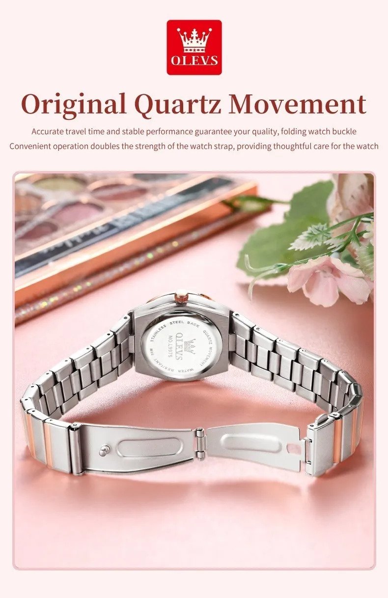 Olevs 9975 Silver RoseGold Two Tone Stainless Steel Analog Wrist Watch For Women