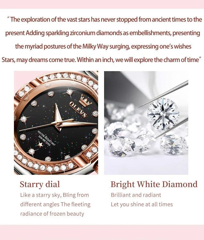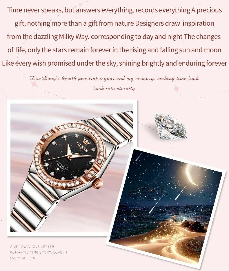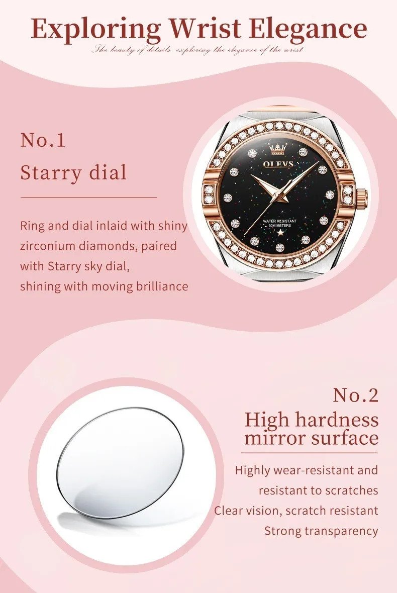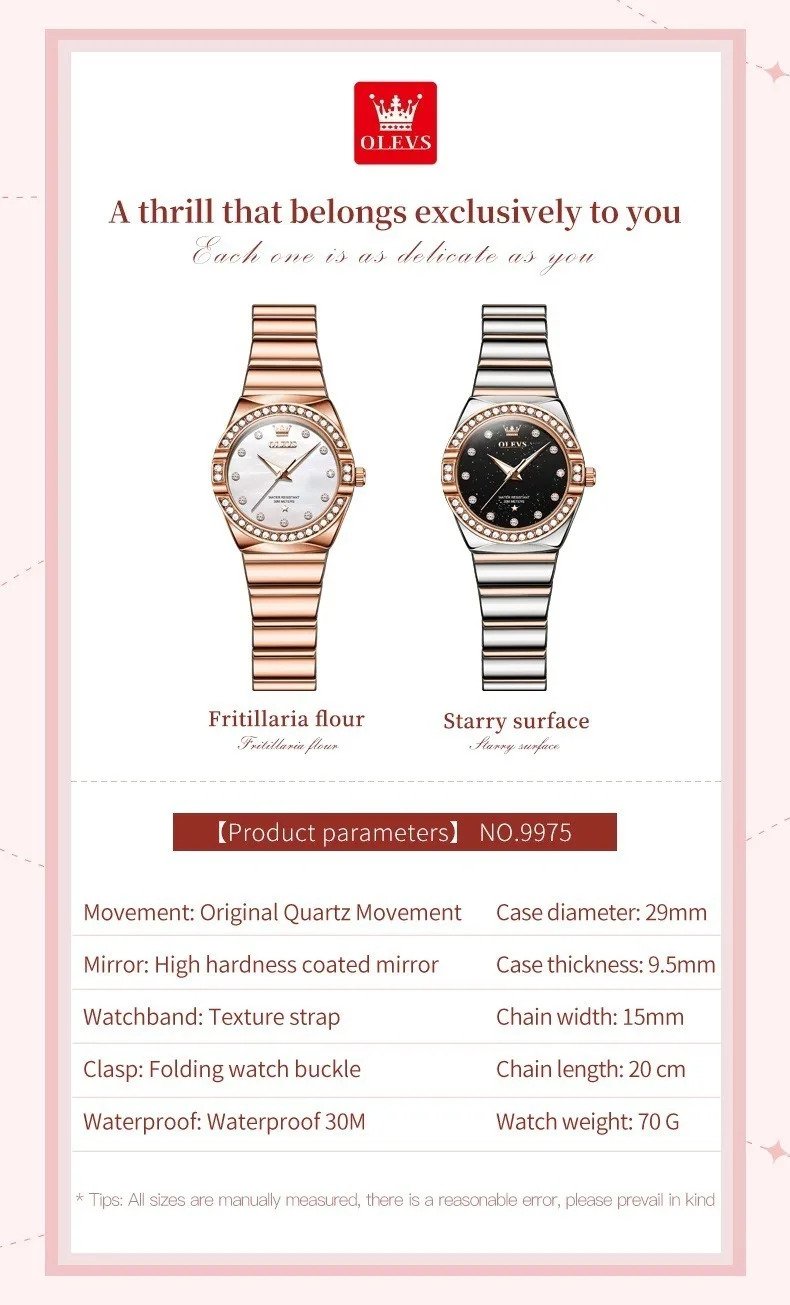 Olevs 9975 Silver RoseGold Two Tone Stainless Steel Analog Wrist Watch For Women