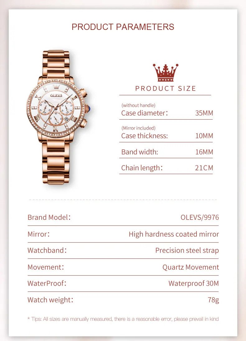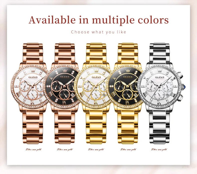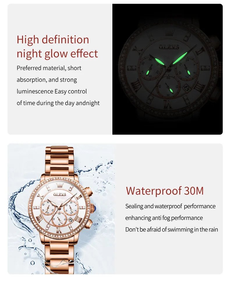 Olevs 9976 RoseGold Stainless Steel Chronograph Wrist Watch For Women