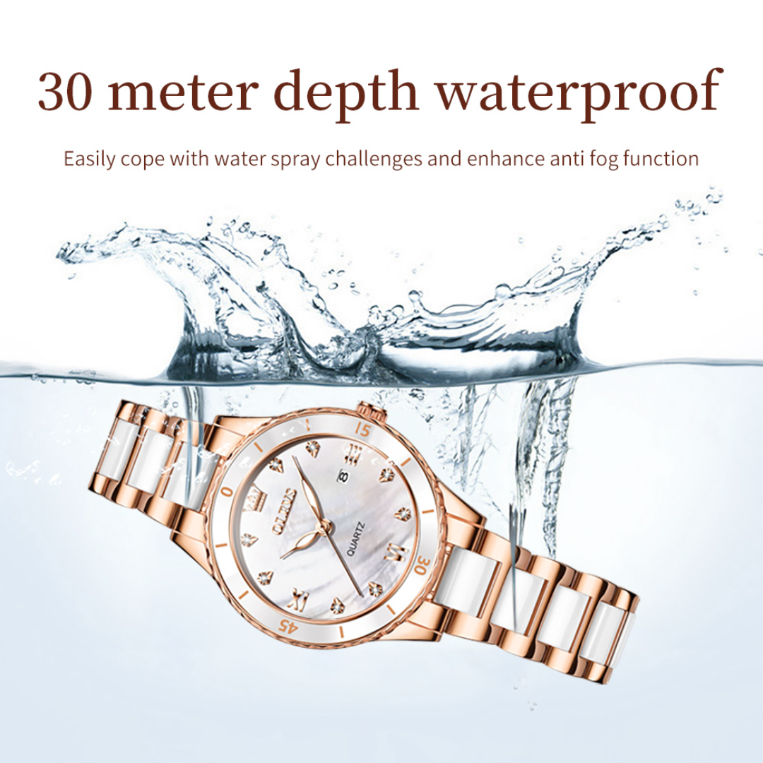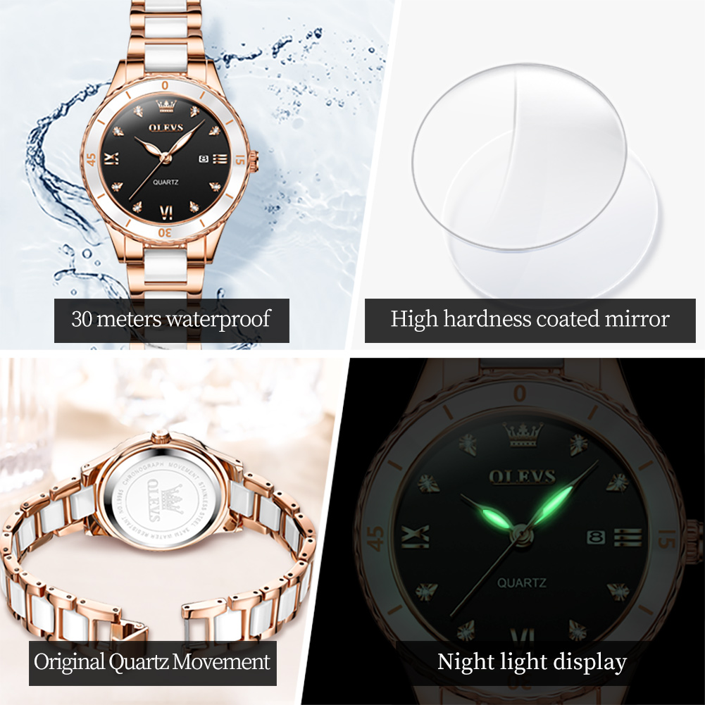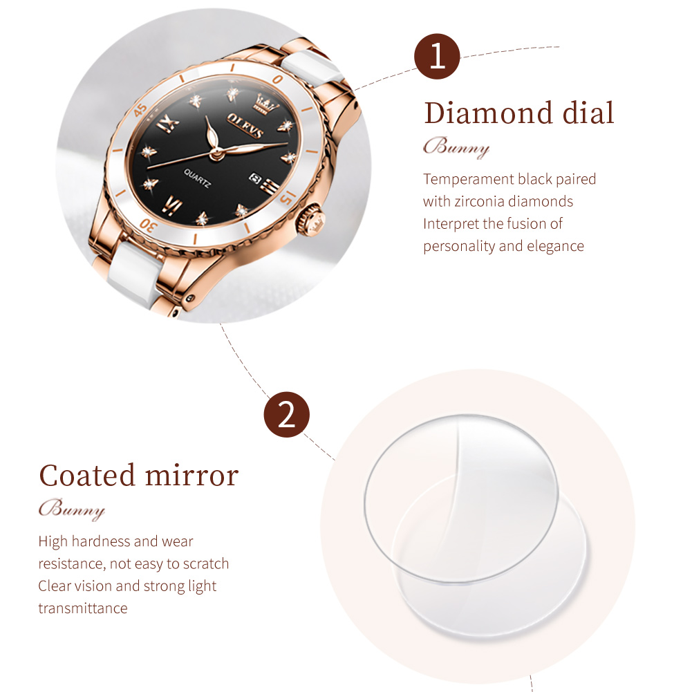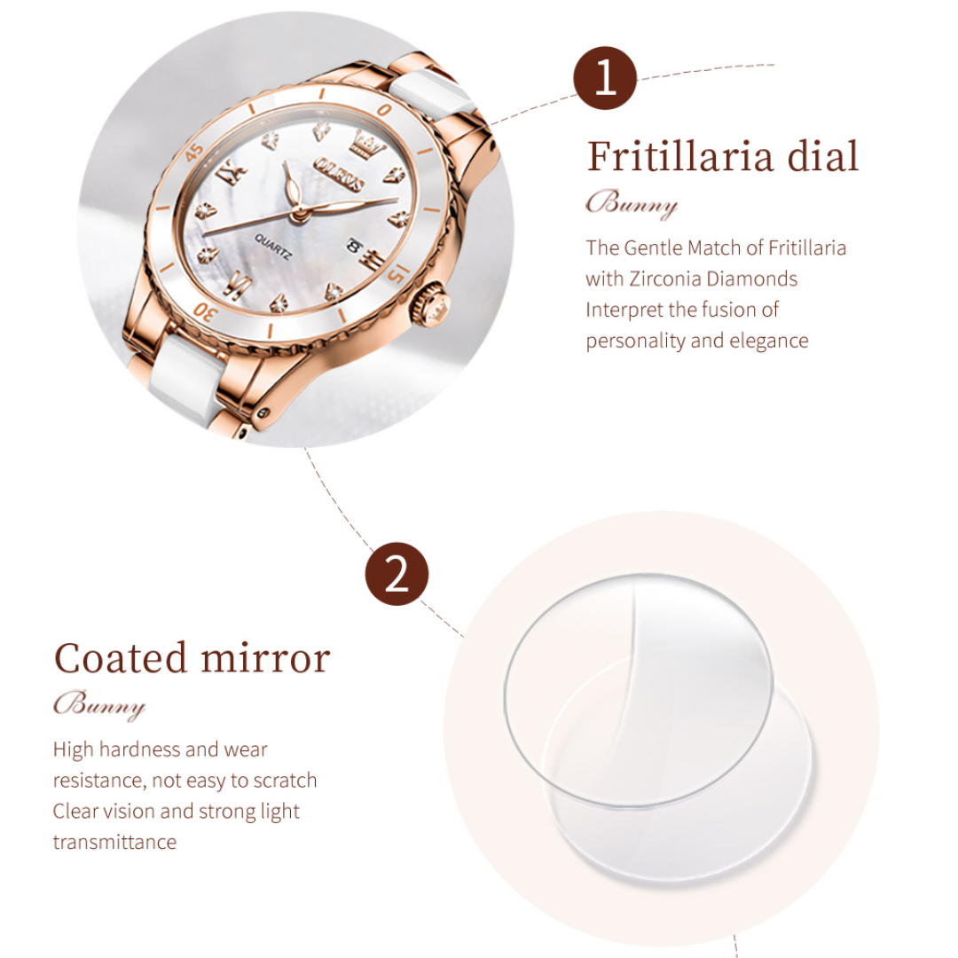 Olevs 9985 RoseGold & White Ceramic Analog Wrist Watch For Women