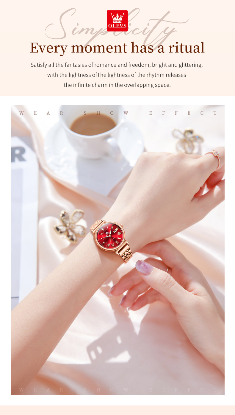 Olevs 9997 RoseGold Stainless Steel Analog Wrist Watch For Women